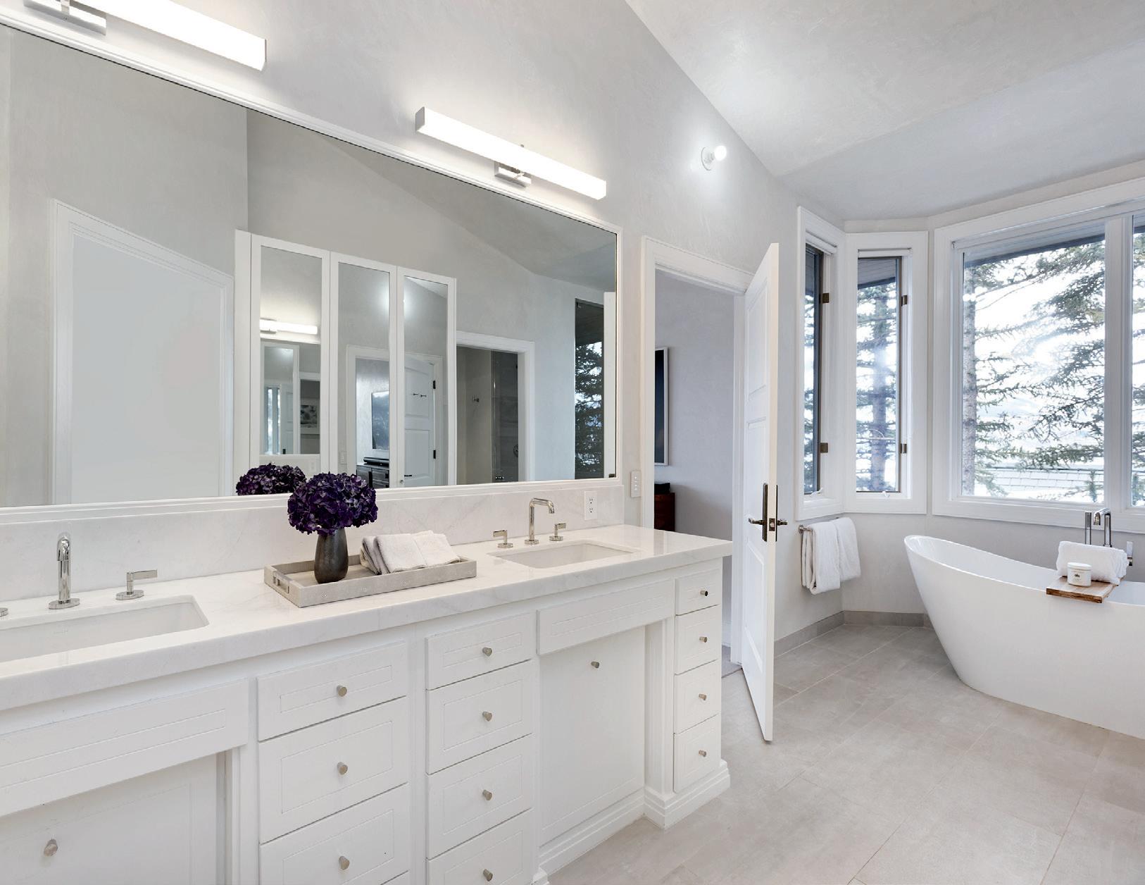 Primary Bedroom: King Bed with Ensuite • Private Deck Dual Sinks • Tub and Shower