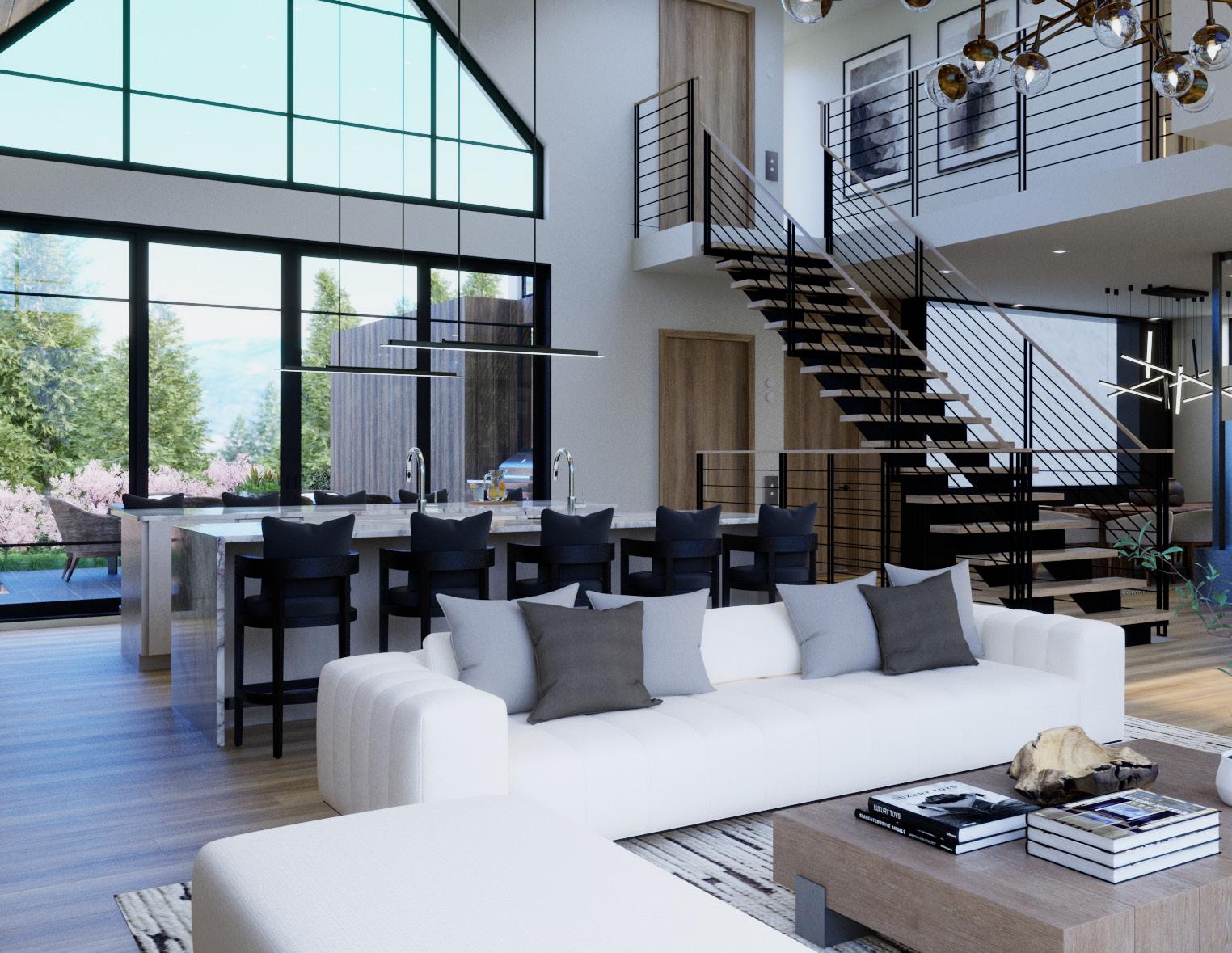Spanning more than 6,000 square feet, this extraordinary residence offers 5 bedroom suites and multiple spaces to gather and entertain. As you step inside, you’ll immediately be captivated by the soaring 21-foot ceilings and the architectural floating staircase that harmonizes form and function. Handcrafted Quantum windows flood the home with natural light and frame views of the surrounding peaks, ensuring that natural beauty is seamlessly integrated into your daily life.