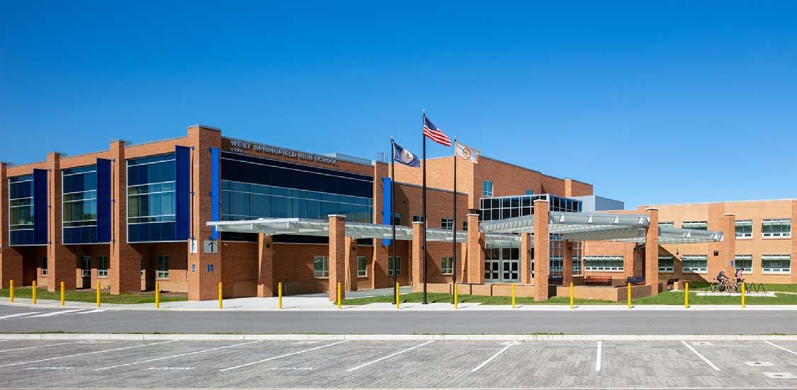 West Springfield High School is an existing 288,000 sf school housing 2,200 students. The project comprises a comprehensive renovation touching all areas of the school. The design includes additions totaling approximately 109,000 sf, highlighted by relocating the entrance of the school to the main parking lot and the “fly-over” science addition.