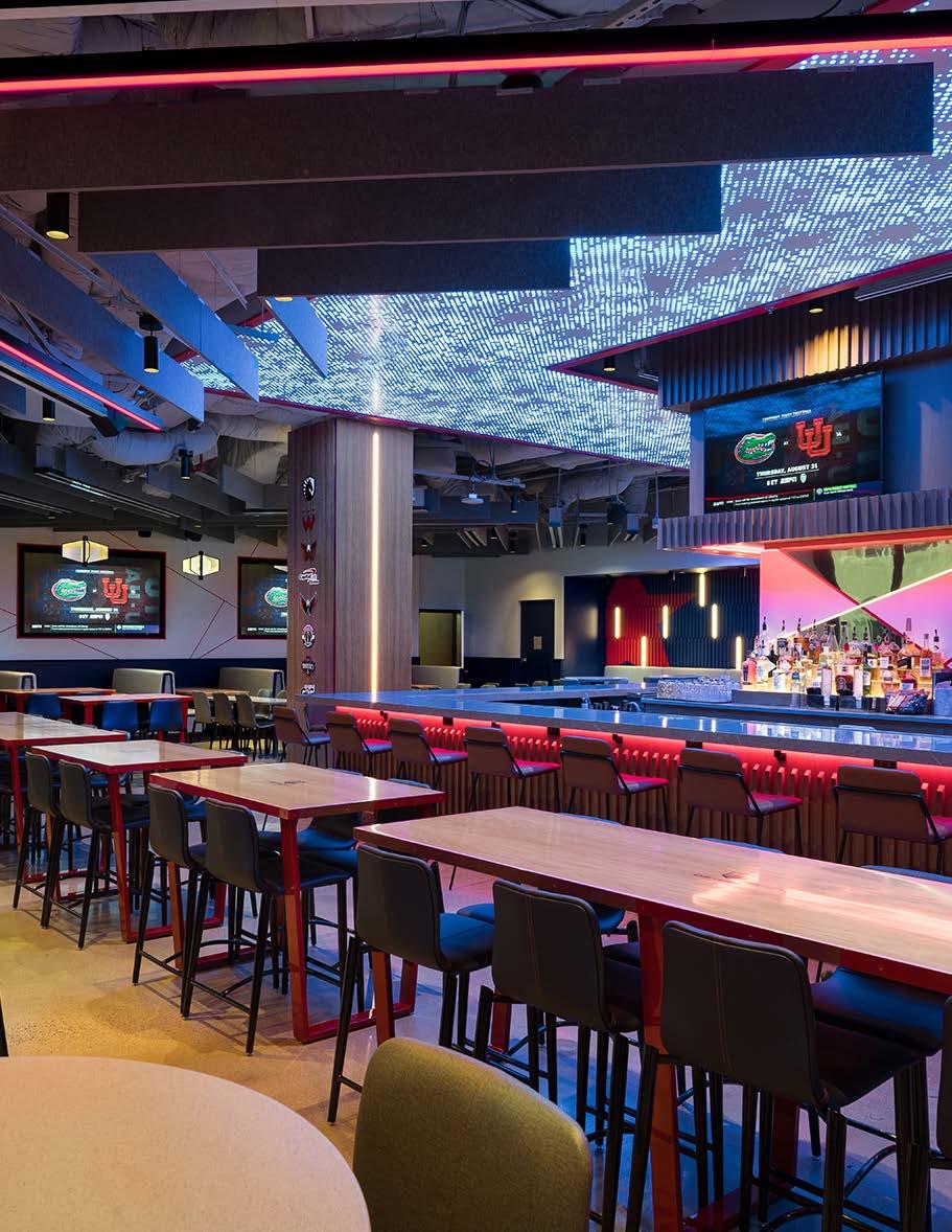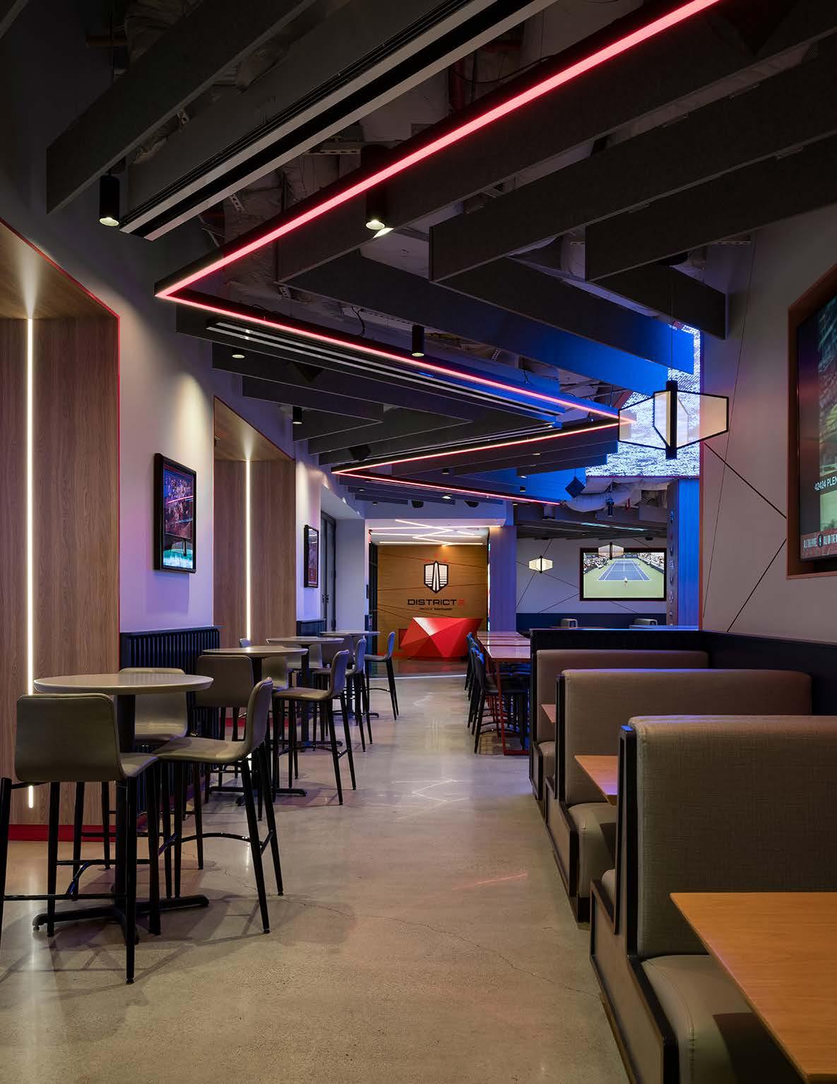 Architecture, Incorporated provided full architecture and interior design services for the 14,500 sf build-out of District Bites inside of District E, an all-in-one esportsfocused venue including a restaurant, bar, competition studio, and professional esports team training center.