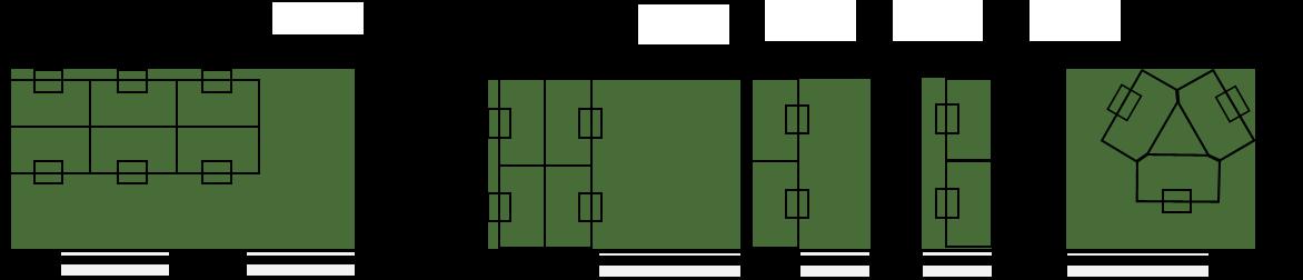 Figur I.8. Ved smalle vindues opdeles udsynet i mindre bidder, hvilket giver en dårligere oplevelse af udsynet. Ved smalle vinduer har vægtykkelsen større indflydelse på udsynsvinklen. Udsynsvinklerne til vinduerne lægges sammen ved bestemmelse af udsynsvinklen fra en given position.