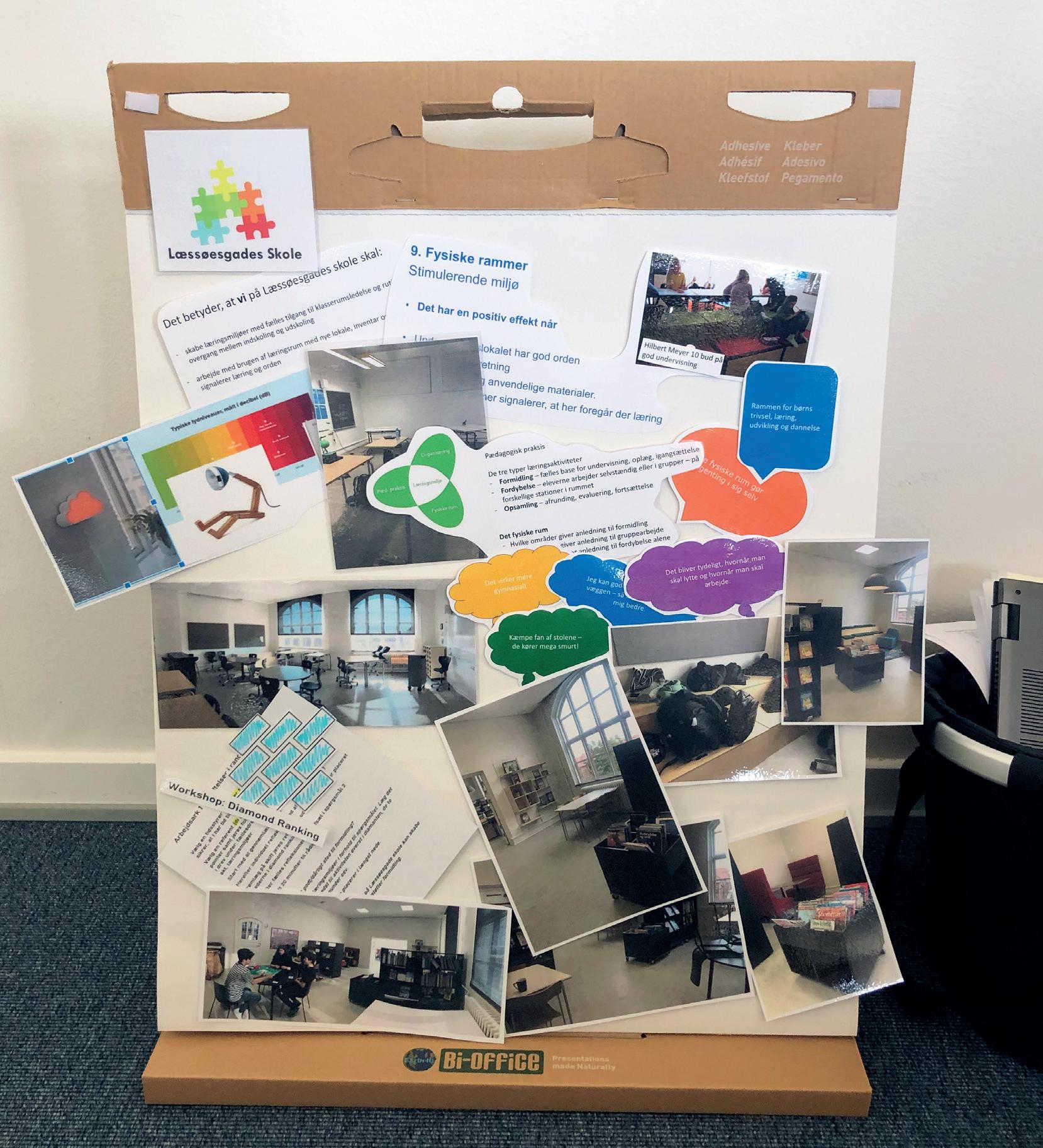 Med ovenstående analytiske ambition er empirien blevet læst i dybden for at finde eksempler på hvor indeklima, fysiske rum og pædagogisk praksis er sat i relation til hinanden. Kursistprojekterne er blevet sammenholdt med materialet fra uddannelsen og analyseret for at se, hvordan inspiration og materialer binder over og skifter form og betydning i processerne for at etablere de fysiske læringsmiljøer. Udover litteratur om det relationelle læringsmiljø (e.g. Gislason, 2018; Mulcahy et al., 2015) trækker analysen på og skriver sig ind i eksisterende litteratur om indeklima (se kapitel 2, desuden Bøjer & Rasmussen, in prep) og behovet for rumlige kompetencer hos lærere (Lackney, 2008; Martin, 2009).