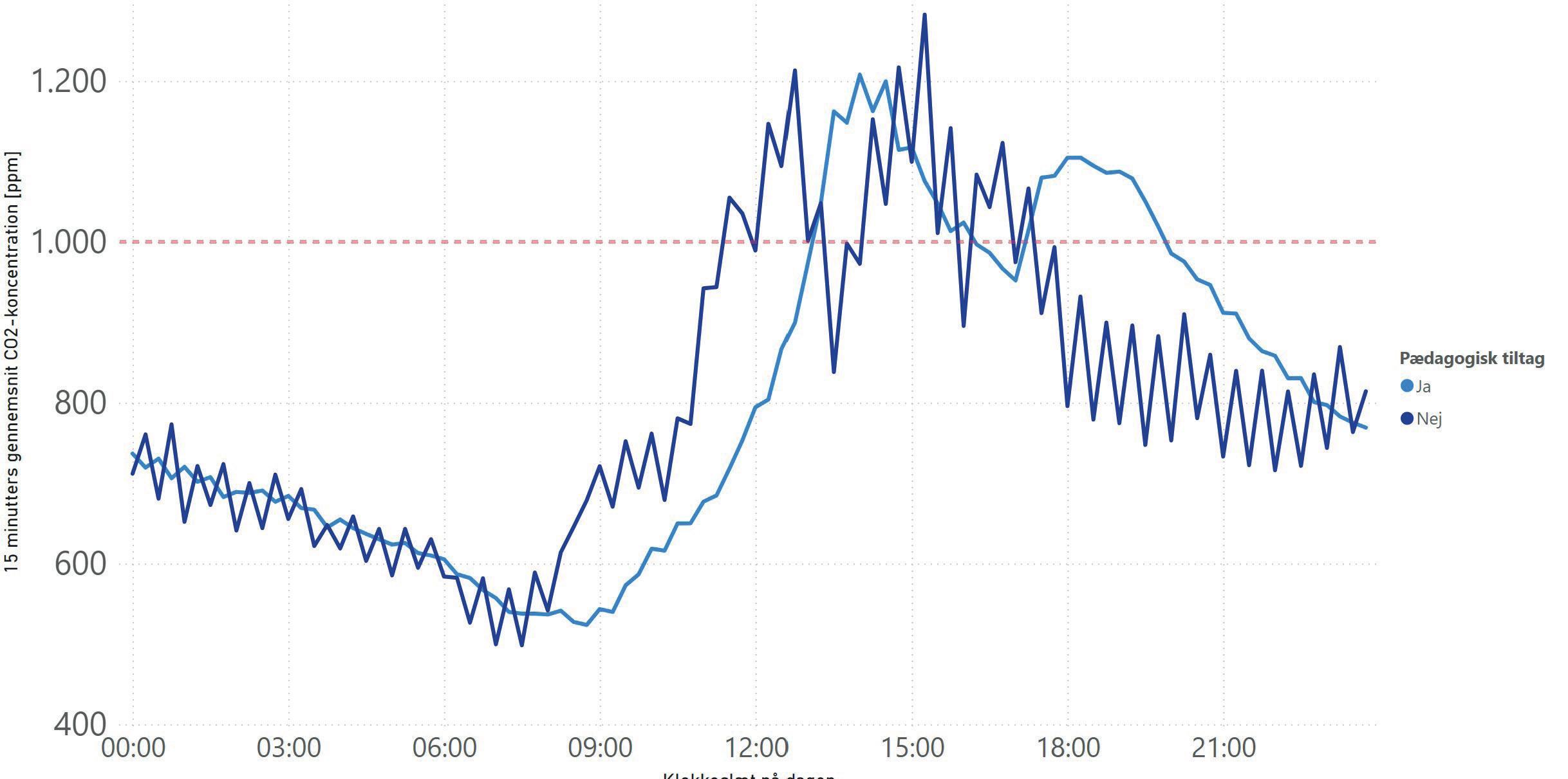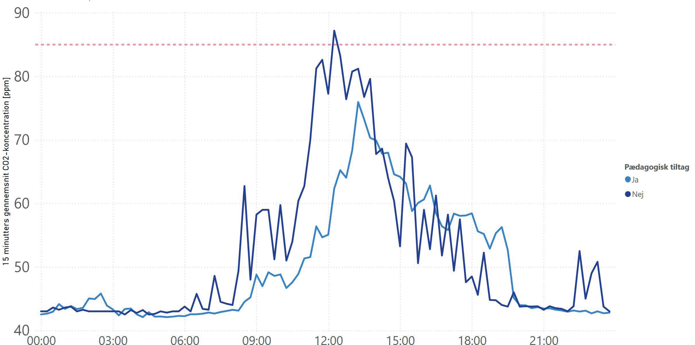Selv om der i projektet ikke er foretaget tekniske interventioner på indeklimaforhold, muliggør indsamlingen af indeklimadata parallelt med pædagogiske interventioner en analyse af koblinger mellem indeklimaforhold og pædagogisk praksis. Det indsamlede data kan kobles til tidligere forskning, som har indikeret, at den absolutte størrelse af de indsamlede indeklimaparametre kan påvirke børns evne til at koncentrere sig om skolearbejde (Wargocki et al., 2019; 2020), og kan dermed være årsagsforklarende til empiri indsamlet ved observationer af pædagogisk praksis. Muligheden for at kombinere analyse af målinger af indeklima med observationer af pædagogisk praksis er os bekendt