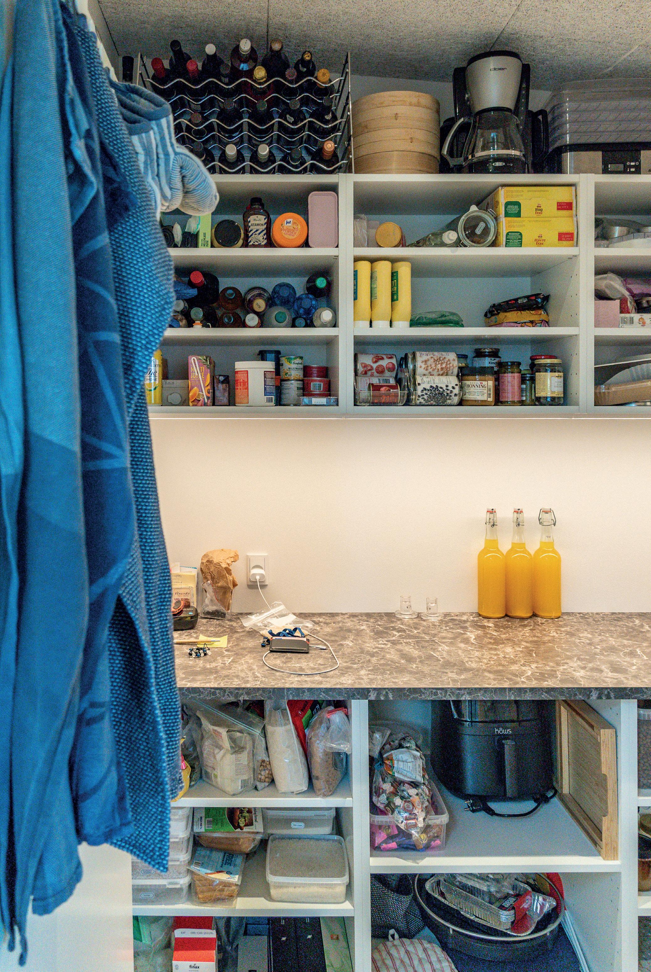 ”Vi bruger ofte viktualierummet, når vi laver mad, der fylder eller roder – især når vi får gæster. Lige nu sker det ikke så tit, fordi min kone er gravid, men før kom naboer og venner tit forbi. Og så er det bare mega fedt at kunne gemme alt rodet væk derude og holde køkkenet pænt og hyggeligt.”