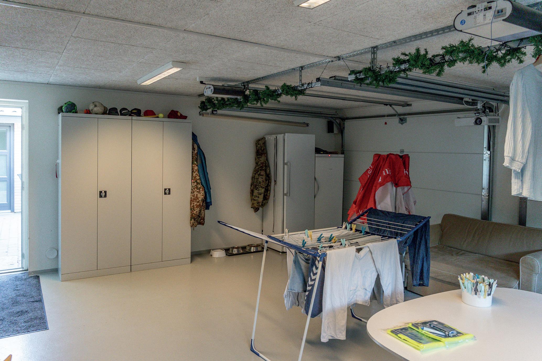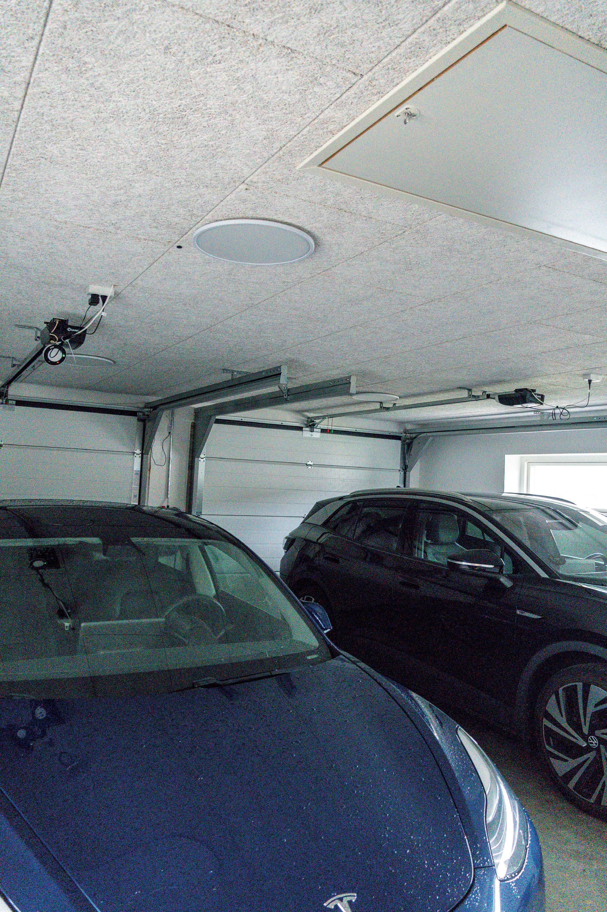 ”Vi holder juleaften herude, og juletræet står også her. Vi bruger garagen mere end stuen, og eftersom vi går igennem den flere gange dagligt, ser vi træet oftere. Garagen er også vores primære indgang.”