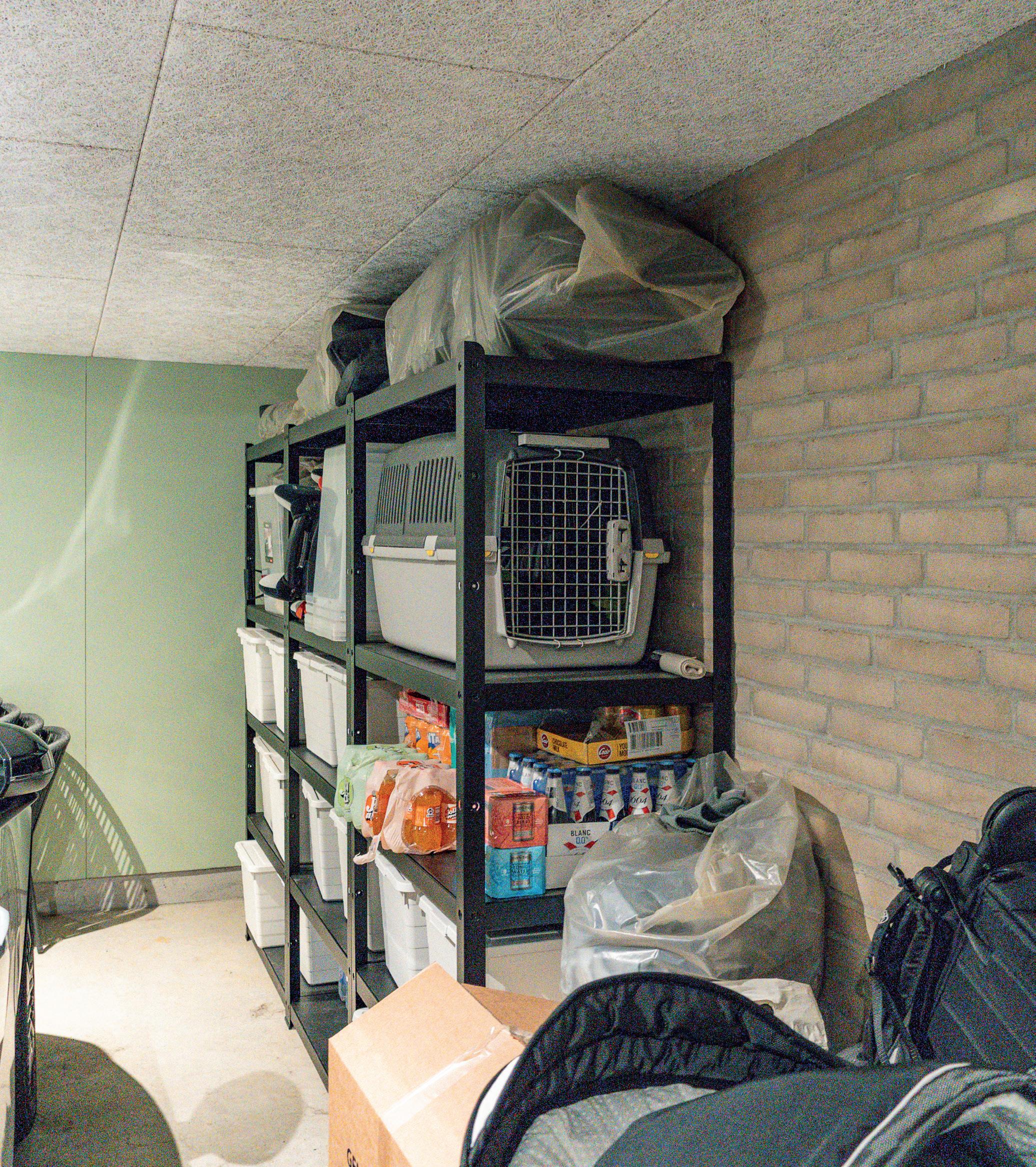 Der er lidt strukturelt rod, og det føles næsten pinligt at vise frem, men vi manglede dette rum i det gamle hus. Her kan vi samle alt det, der roder, og få adgang til det. Vi handler sjældent stort, mest vores to store drenge i sommerferien, men ellers bruges rummet primært til opbevaring af maskiner, som før stod bagerst i skabene.