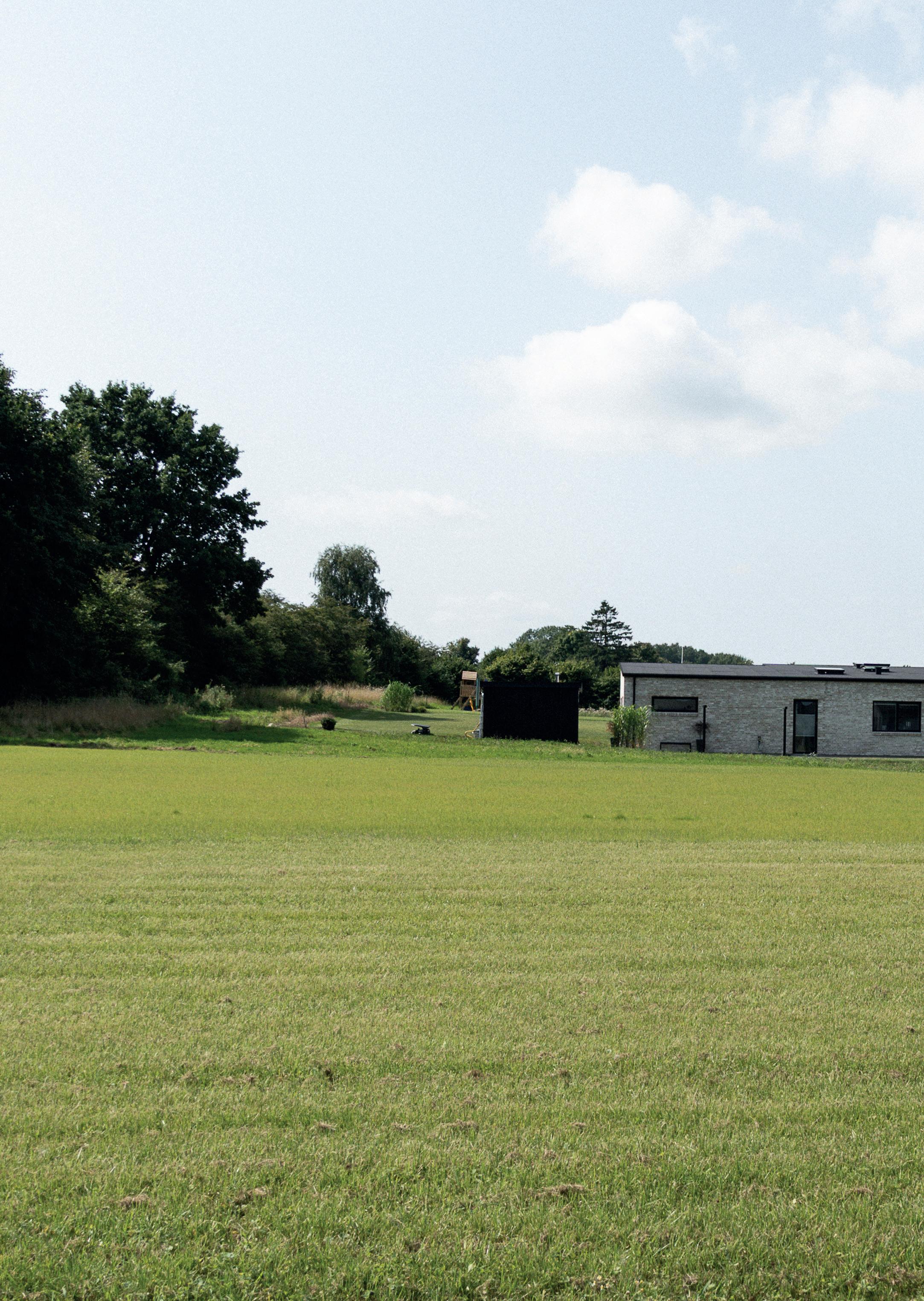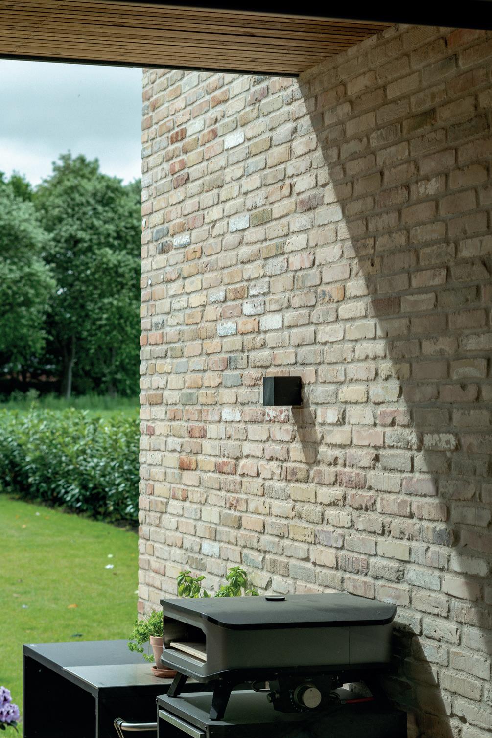 ”Vi valgte den gule genbrugstegl, fordi vi var bevidste om, at vi byggede nyt, men ikke ønskede, at huset skulle se nyt ud. Det skulle ligne alt andet end et nybyggeri – man skulle kunne mærke, at der var sjæl i det. Selvfølgelig er der også et bæredygtigt element i at bruge genbrugsmaterialer, men for os handlede det mest om strukturen og varmen i overfladen. Murstenene har så meget spil og karakter, som giver huset liv.”