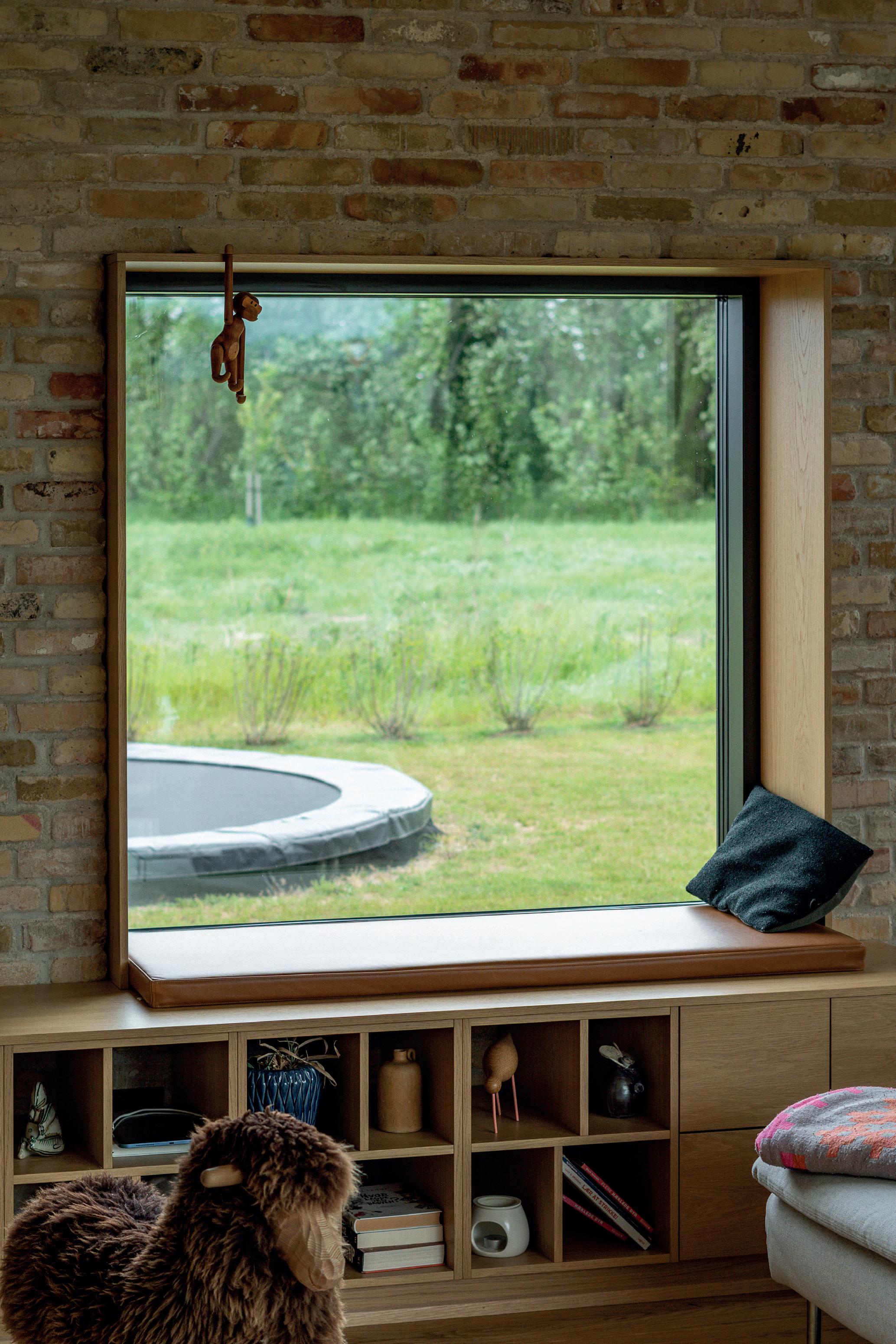 ”På plantegningen hedder det ‘gang’, men vi kalder det læsestuen eller loungen. Jeg ville gerne have et rum uden fjernsyn, hvor man kan sidde med en kop te eller læse. Jeg elsker at læse her om sommeren – der kommer lys og lidt vind ind fra ovenlysvinduerne, og katten løber ikke ud.”