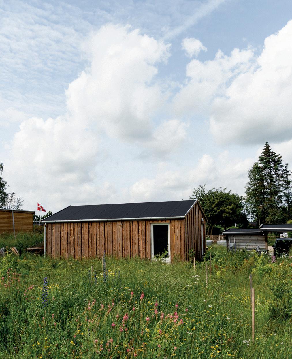 ”De tidligere ejere brugte det som garage, men da vi flyttede ind, satte vi køkkenskabe, køleskabe, projekter og varmepumpe herude og isolerede rummet. Når vi har flere gæster, end køkkenet kan rumme, sidder vi her.”