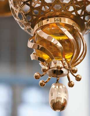 Nærbillede af husets loftslamper, som er genskabt efter gamle fotografier og i høj grad bidrager til at give rummene deres styrke og karakter tilbage.