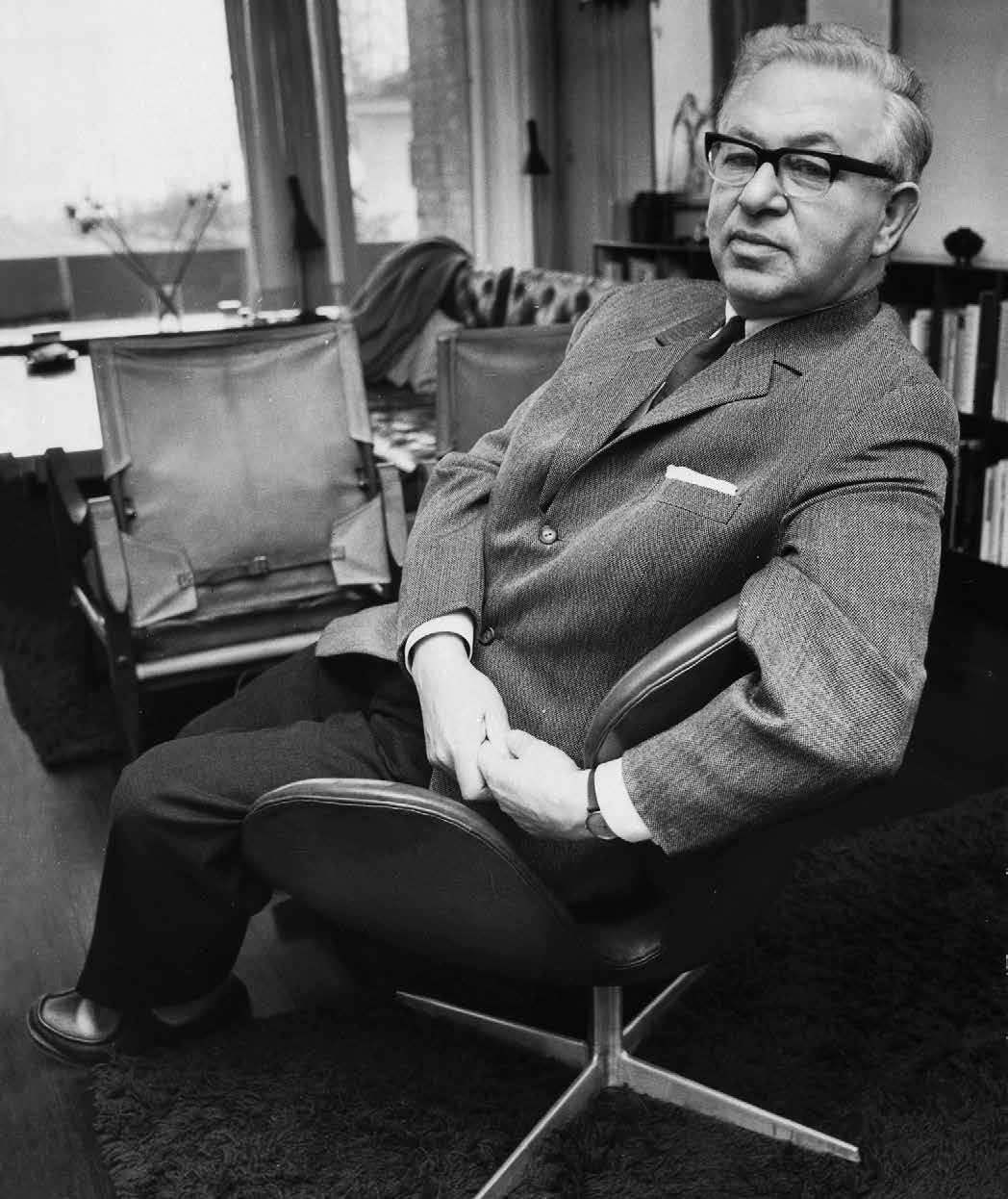 Arkitekt og professor Peter Thule Kristensen løfter her blikket fra Arne Jacobsens eget hus og ser på hele den Søholm-bebyggelse, som rækkehuset er en del af.