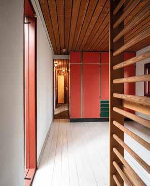 I hovedhuset er pladsen mellem forstuen og tegnestuen udnyttet til både skabsgang og badeværelse. Også disse skabe tilhører MI60-serien.