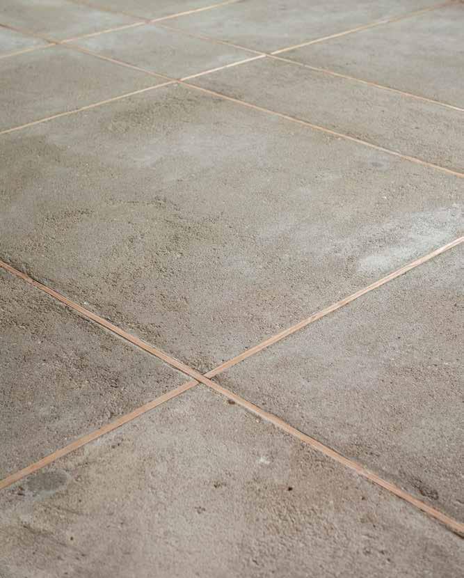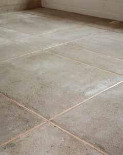 På gulvet ved spisepladen ved køkkenet har årtiers skramlen med stole skabt synlige mærker i betongulvet.