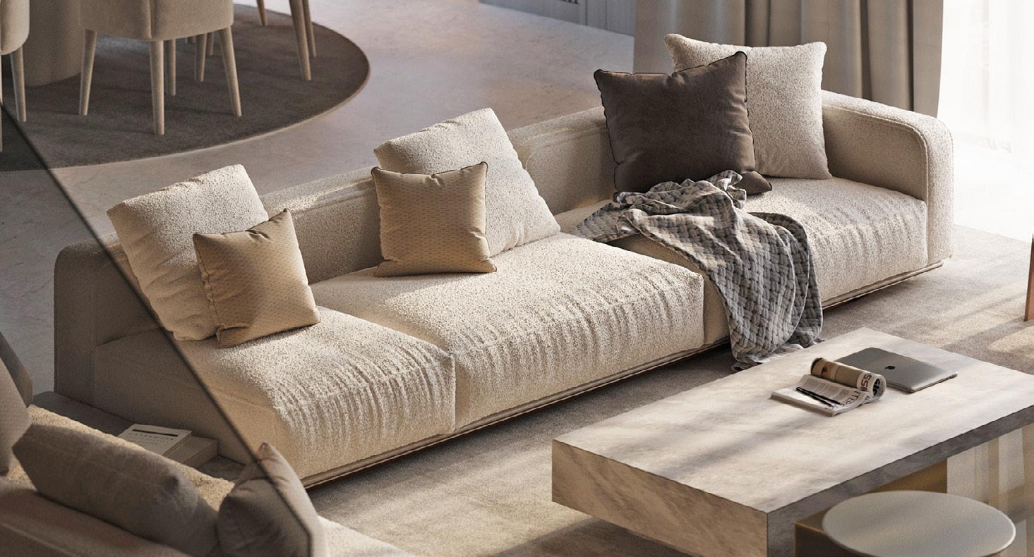 Čiste linije, zaobljene ivice, poigravanje teksturama i prirodne nijanse inspirisane peskom, kamenom i drvetom, pretvoriće vašu dnevnu sobu u moderan i prijatan ambijent koji će vam pružiti osećaj slobode, udobnosti i dinamične energije