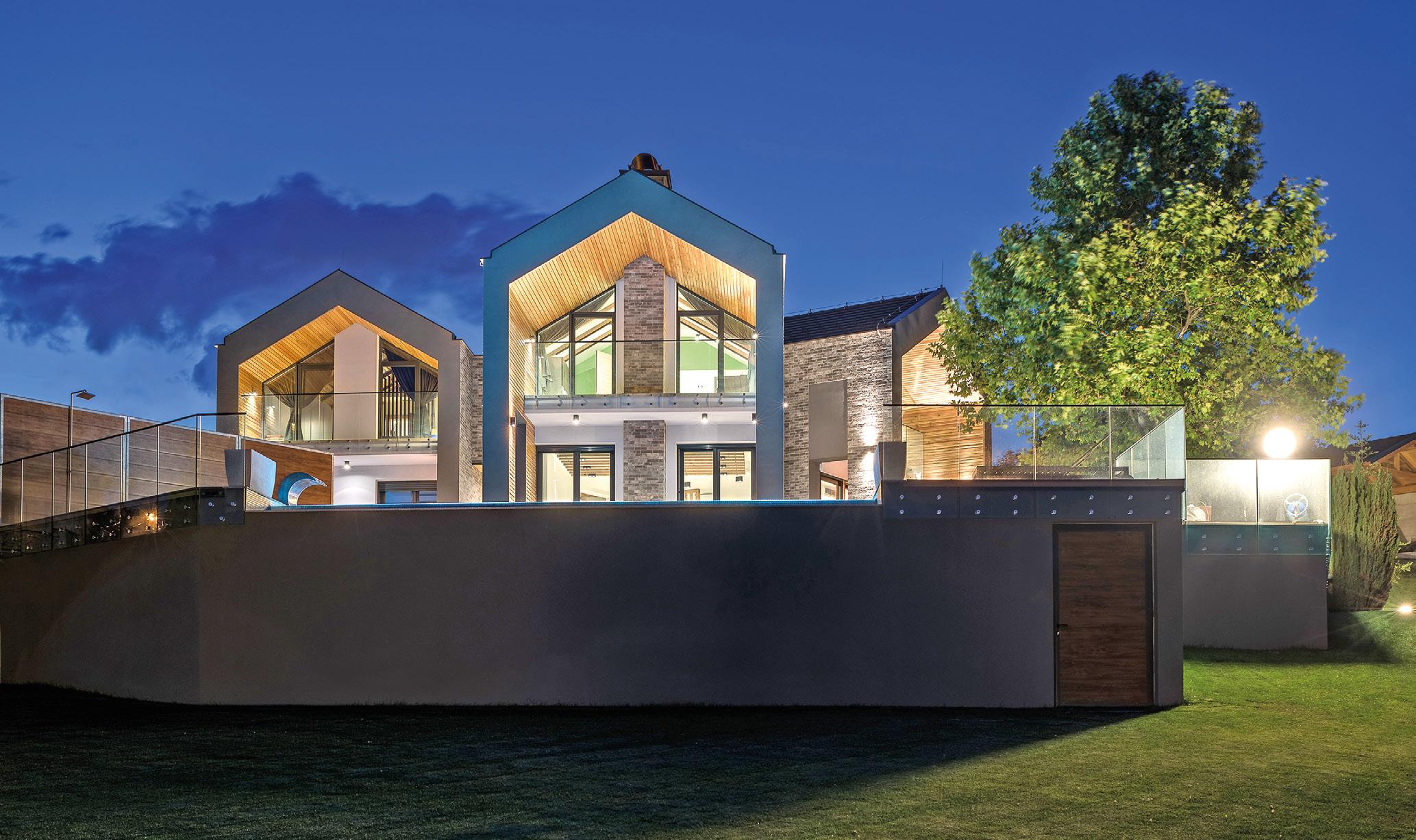 iz zatvorenog u otvoreni prostor i obrnuto. Stakleni portali ostavljaju neprekinutu vezu između aktivnosti napolju i unutar kuće. Zahvaljujući njima, boravkom unutar kuće ne prestaje utisak slobode, a pogled na okruženje nastavlja da živi i unutar kuće.