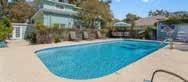 Breathtaking Atomic Ranch home walking distance to the beach! Beautiful wood flooring throughout. Formal living room w/ stone fireplace. Formal dining w/ large sky light. Kitchen has beautiful cabinets, hutch, breakfast bar/island w/ granite & vaulted ceilings. Study with built in bookcases, private patio. Jack & Jill bath w/ steam shower. Beautifully landscaped, large pool, security system. Owner is Real Estate agent.