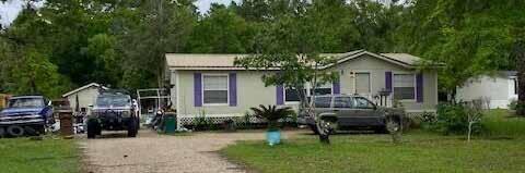 24.85 acres. If you are looking for a large home with a lot of potential, then this is the home for you. The property is beautiful with fruit trees and rows of blueberry bushes. The land fronts on the corner of 2 county paved roads just off Hwy. 43 north. There are several large oak trees scattered throughout the property along with a pond/ small lake behind the home.