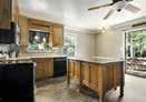 with stainless appliances, granite counters, and sun room surrounded by windows. The primary bedroom is on the main level that opens to one of the porches. The roof was replaced recently, and windows updated to hurricane resistant windows. Utility lift for ease of loading. The pool is to be sold “as is” and has a beautiful safety fence all around. Underneath, plenty of parking and entertaining area, with fish cleaning station, enclosed workshop and a separate storage building. $399,900