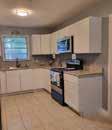 Exquisite home completely renovated by professional designer is move in ready! Stunning, bright open space w/ large quartz island, custom cabinets & beautiful hardware in kitchen, separate dining, custom lighting throughout. Ceramic tile surround in bathroom, extra large screened patio. $299,000