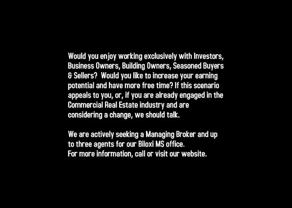 WATERFRONT IN BAYOU VIEW 3 BD | 5 Full, 2 Half BA | 7000 SF | MLS #4019227 $1,300,000 3 Rivers Bend Drive, Gulfport Panoramic views, 22’ ceilings, elevator! Dining room opens to outdoor Kitchen. Chef’s Kitchen has every feature you could ask for & a view! Media room, study, 2 laundry rooms. Outdoor grill, heated pool, jacuzzi, 3 boat slips w/ deep water access. Painting allowance. CHASEWOOD SUBDIVISION 3 BD | 2.5 BA | 2850 SF | MLS #4024569 $470,000 13205 Chasae Lane, Gulfport High ceilings, 2 fireplaces, new custom cabinets, granite counter tops, stainless appliances, large laundry w/ built-ins & granite. Dining room opens to living room & study. Large Master, covered patio, outdoor kitchen, exercise pool, landscaped yard, oversized double garage. 6.1 ACRES | MLS #4006778 2029 Popps Ferry Road, Biloxi Great Location for subdivision or multi-family development. 365 feet of road footage. Possible COMMERCIAL use with zoning change. $1,475,000 DEVELOPMENT OPPORTUNITY