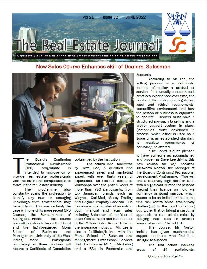 The Real Estate Training Institute 1 Surbiton Road, Kingston 10 | 876-350-6761, 876-633-1292 Pre-licensing Course for: Dealers | Salesmen | Property Management Plus: Local Land Law and Refreshers Course For information on individual courses Including entry requirements, course content dates, times, application deadlines, costs, examinations dates etc. visit the courses section of our website at www.reb.gov.jm
