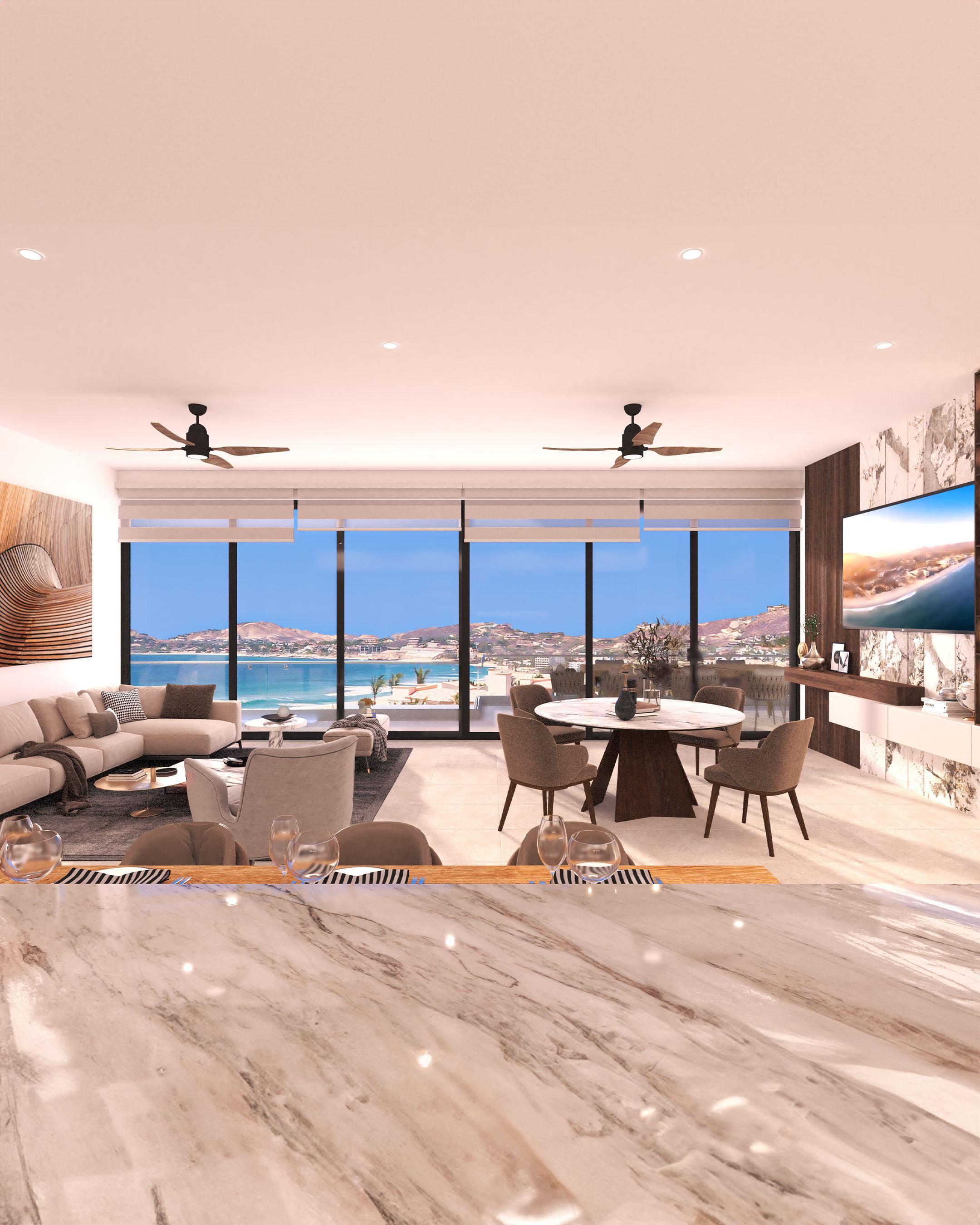 equipped open concept kitchen dinner, with an extra bedroom-office with a shared bathroom for visitors, laundry room, dining room and living room with a sofa to create a fourth room, if necessary. The generous covered terrace has room for sun loungers, and terrace dining, BBQ equipment service on demand. All living spaces are designed with the most luxurious finishes for ultimate comfort. Rain shower and private WC give the spa-like bathrooms a resortlike feel in the comfort of home.