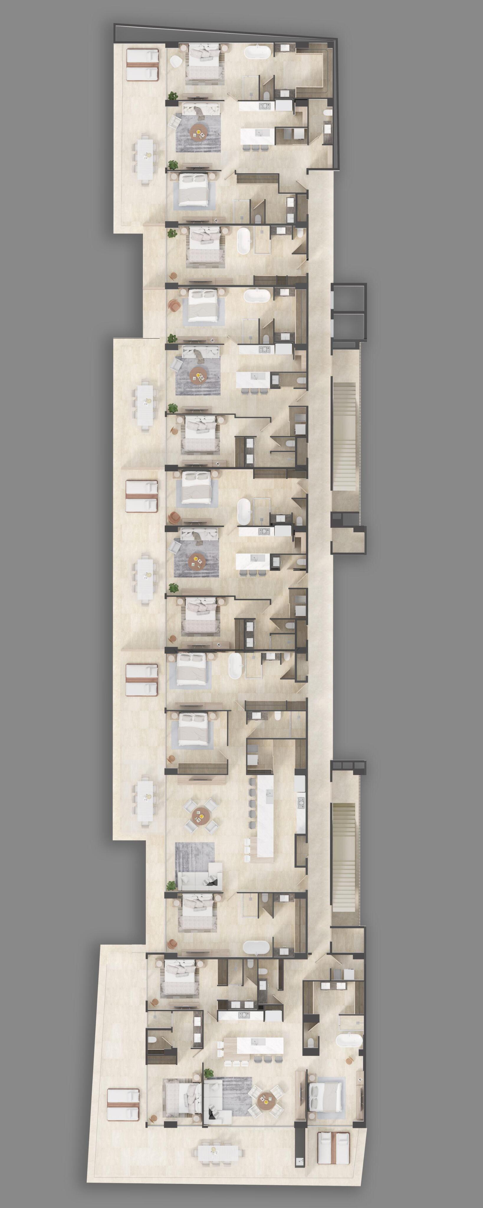 33 residential units, an exclusive lobby bar, a beach club, and a wellness spa.