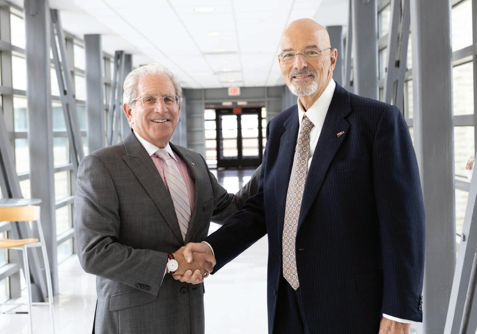 Jooel Blooom o (left), Neew Jersey Institute of Technology’s thenprresident, t joi o ned Pauul V Profeta, president of Paul V. Profeta & Associattes Innc., , in 20021 to coommem e orate Profeta’s gift to launch centeers s for r rea e l estate and d entrepreneurship.