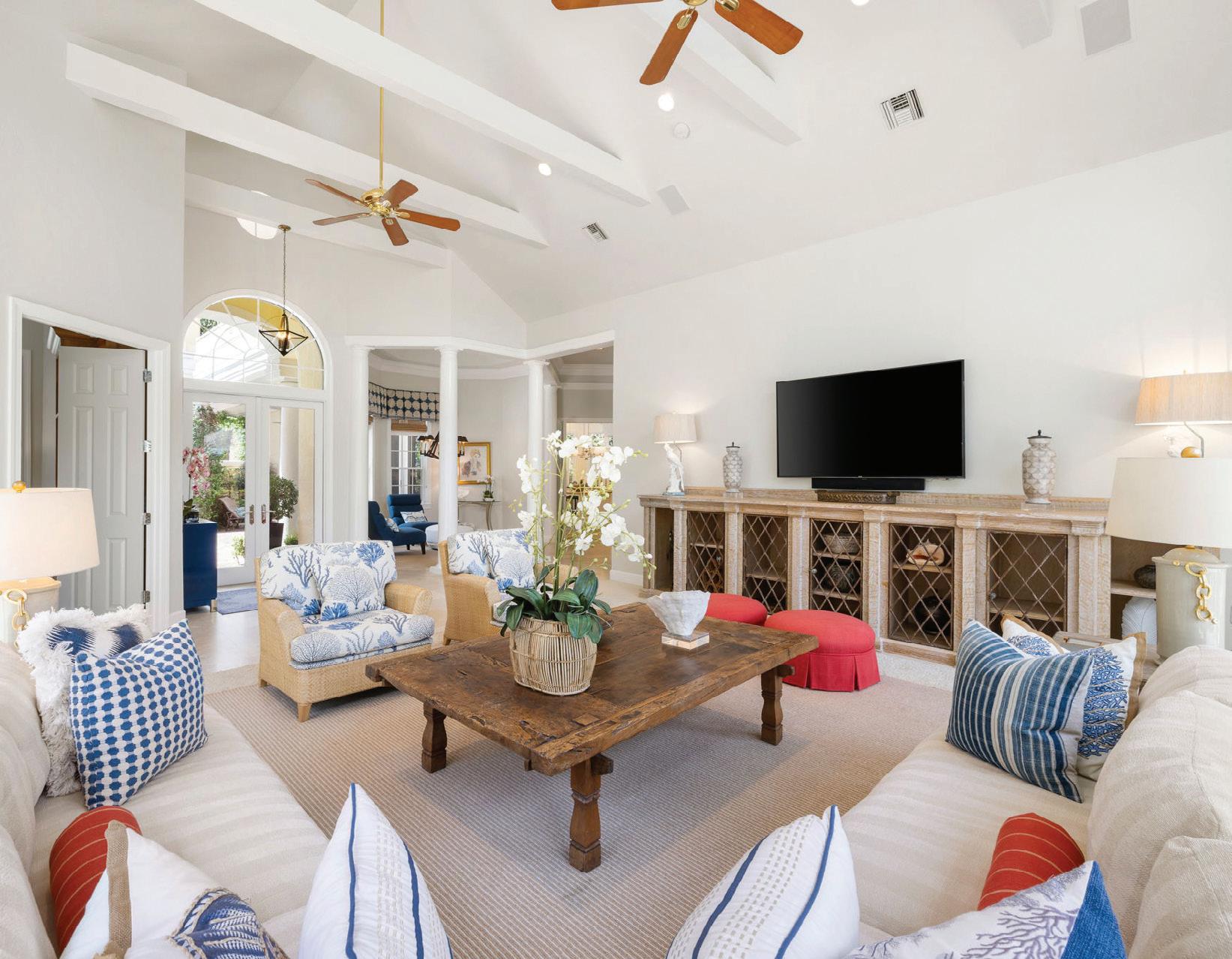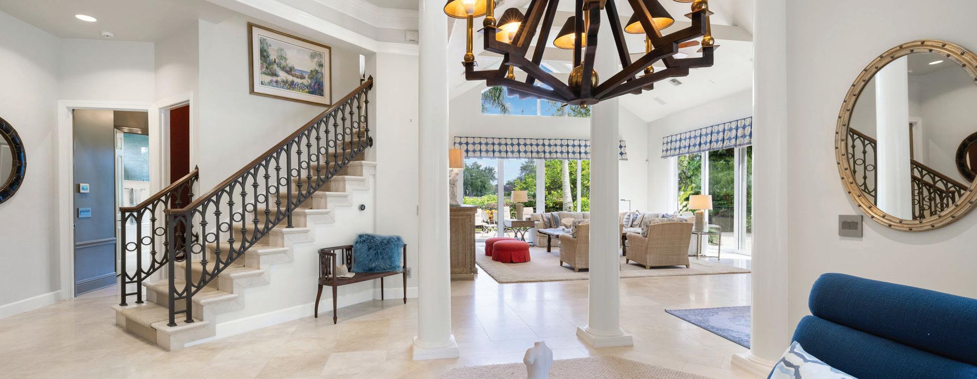 This is a one-of-a-kind home inside one of Naples’ prestigious beach communities. With a Palm Beachinspired redesign by none other than the renowned Wilfredo Emanuel Designs, this home stands out above the rest. In the gated enclave of Isle Verde, this five-bedroom plus den estate with a private two-story guest casita is one of very few homes with sweeping golf course and lake views, ultimate privacy, and an expansive layout of almost 5,400 square feet, ideal for entertaining or multigenerational living.