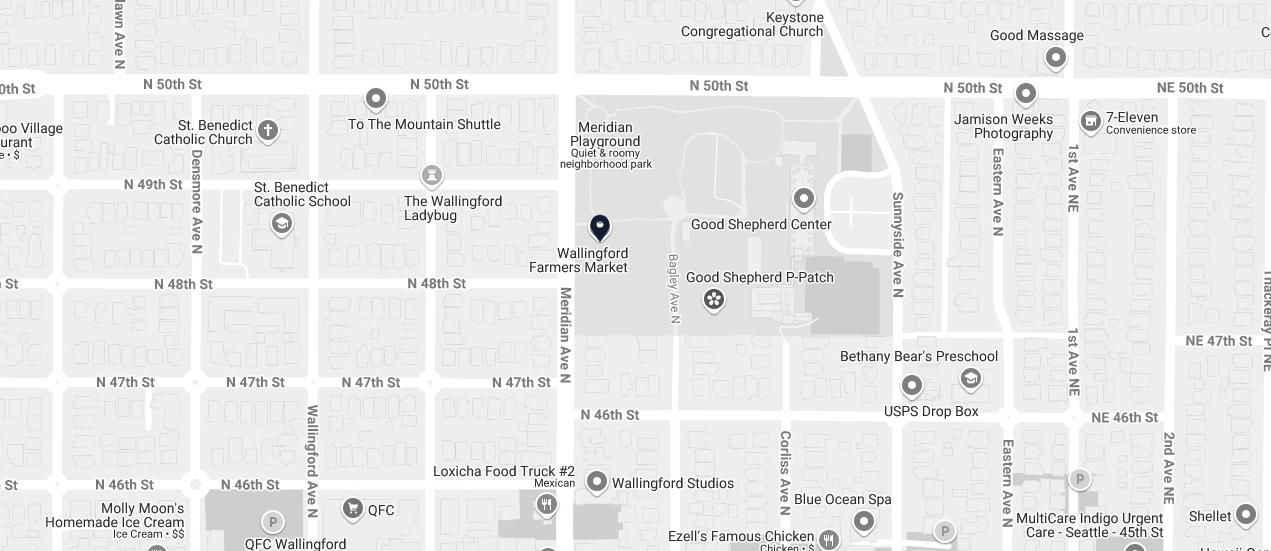 Nestled in Meridian Park at the corner of Meridian Avenue N and N 50th Street, the Wallingford Farmers Market is celebrated by the Washington State Farmers Markets Association (WSFMA) as one of the finest in the region.