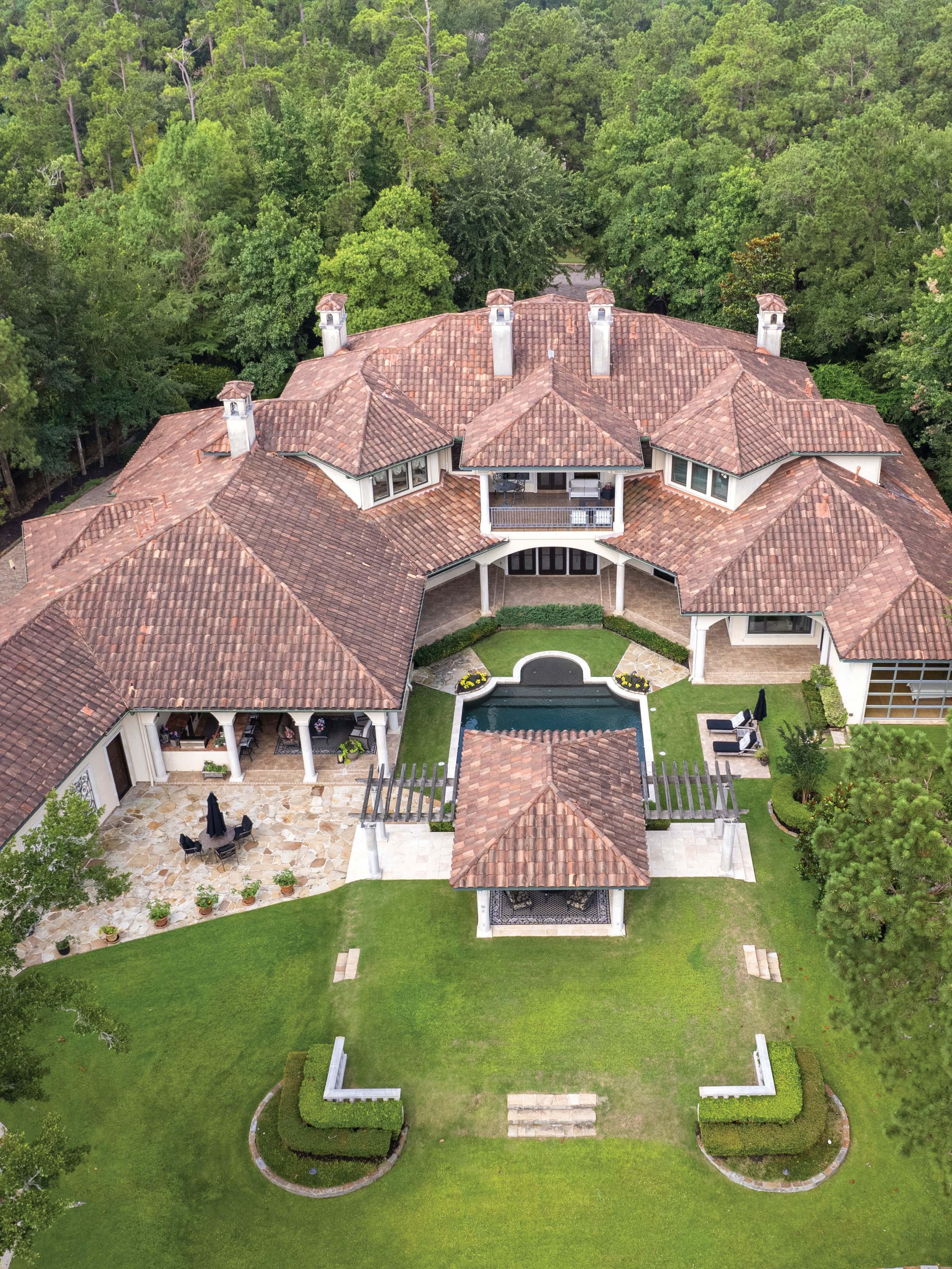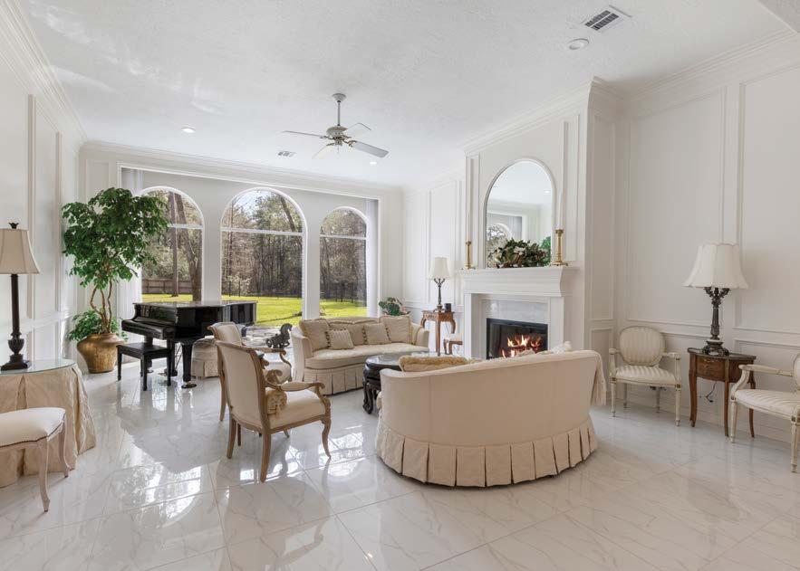This elegant home sits on over five acres of lush grounds, within 5 minutes of The Woodlands. Set back from the road with a circular drive, this home exudes quality with a beautiful designer interior and elegant appointments. The home lives as a one story, with three bedrooms and three large living areas down. Each upper wing of the home has a large bedroom with ensuite bath. One upstairs wing has an oversized game/activity room with a handy storage room. The primary suite is palatial and private with a recently updated bath and cavernous 26'x14' closet beyond. The kitchen is centrally located with upgraded stainless appliances and a massive pantry/prep area. This beautiful, remodeled home has a large media room down. Outdoors is an enormous, covered veranda with a kitchen, fire pit, lush pool & spa, and an oversized three car garage So many possibilities for this unrestricted property, horses, gardens, chickens, or a small business in your home or a family compound.