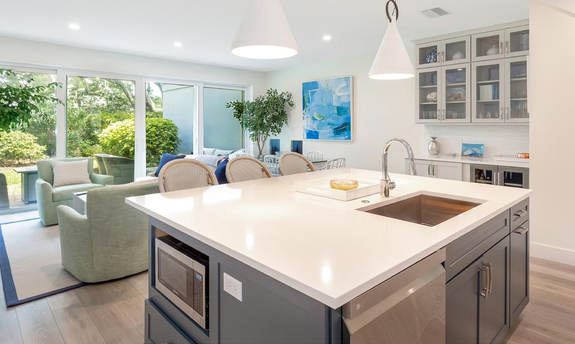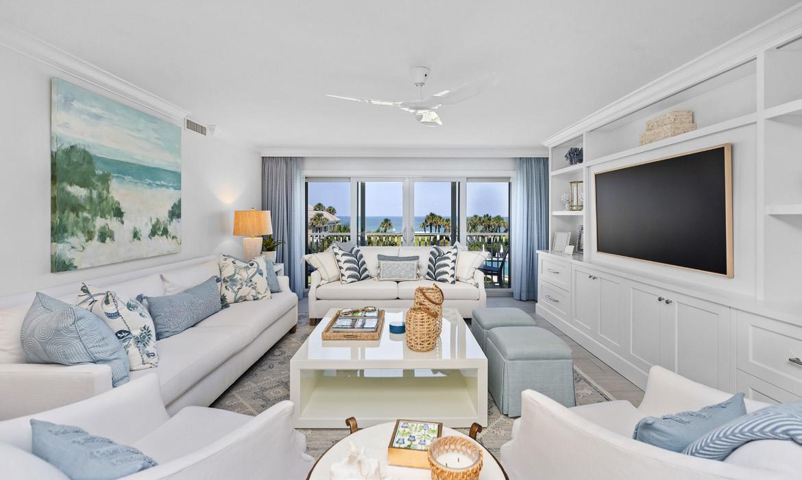 Overlooking the Gulf, this tranquil oasis delivers a boating and entertaining slice of waterfront paradise on a double lot with a private deep-water dock. Located on one of Dunedin’s most coveted streets, from the fully-equipped gym and multi-tiered resort pool, to the state-ofthe-art theatre and prime location, this legacy home provides the very best of waterfront living.