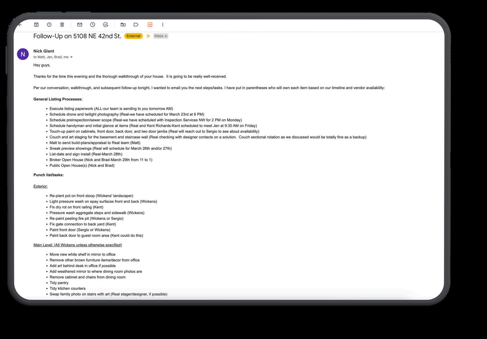 Assistance in coordinating listing preparations and maintenance, ie landscape, repair items, floral display, cleaning, etc