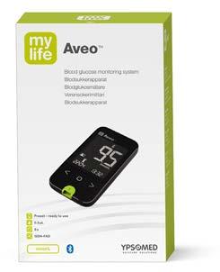 Mulighed for automatisk at overføre blodsukkeret via Bluetooth fra my life Aveo til mylife App, der indeholder en meget brugervenlig bolusbe regner (gratis app til iOS og Android). Det anbefales, at bolusregneren indstilles sammen med en diabetesbehandler – Kontakt Ypsomed for mere info 48240045. Måletid: 5 sekunder Blodmængde: 0,5 µl Hukommelse: 1000 resultater