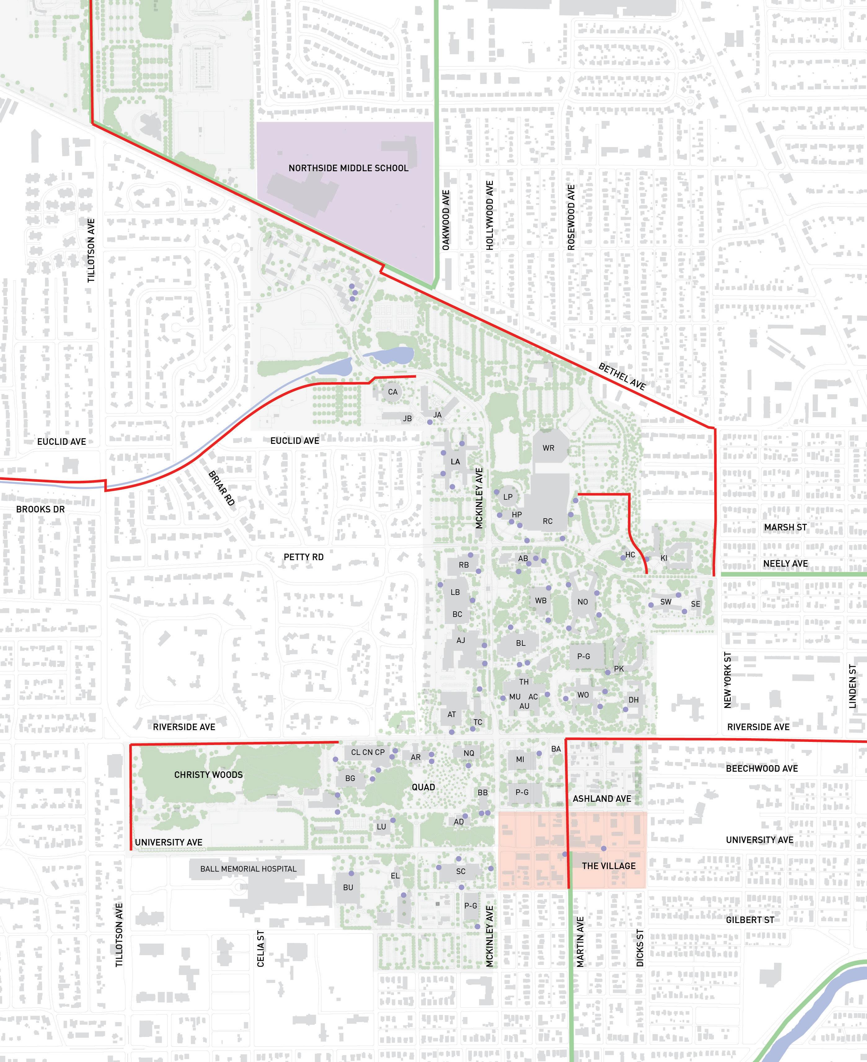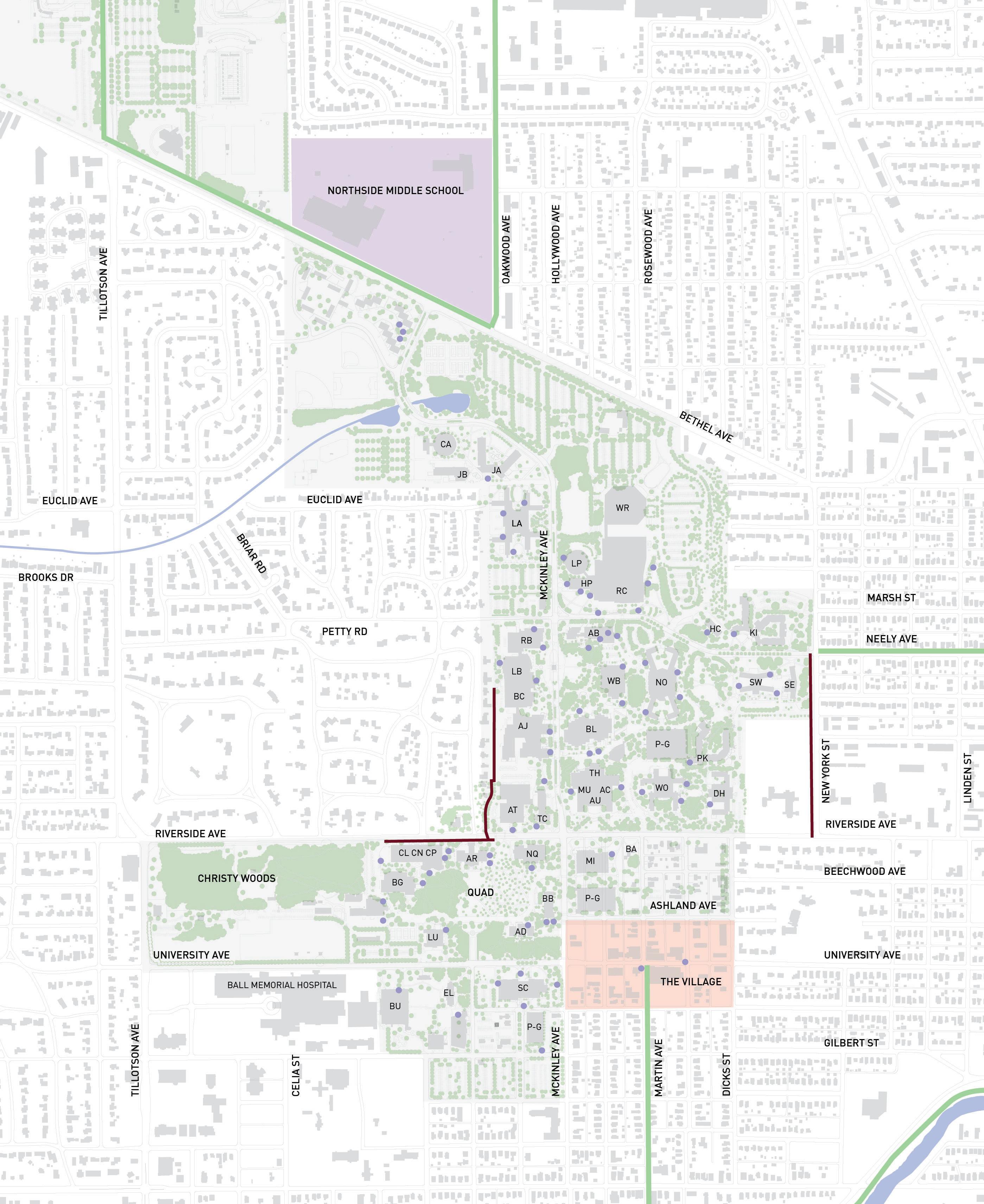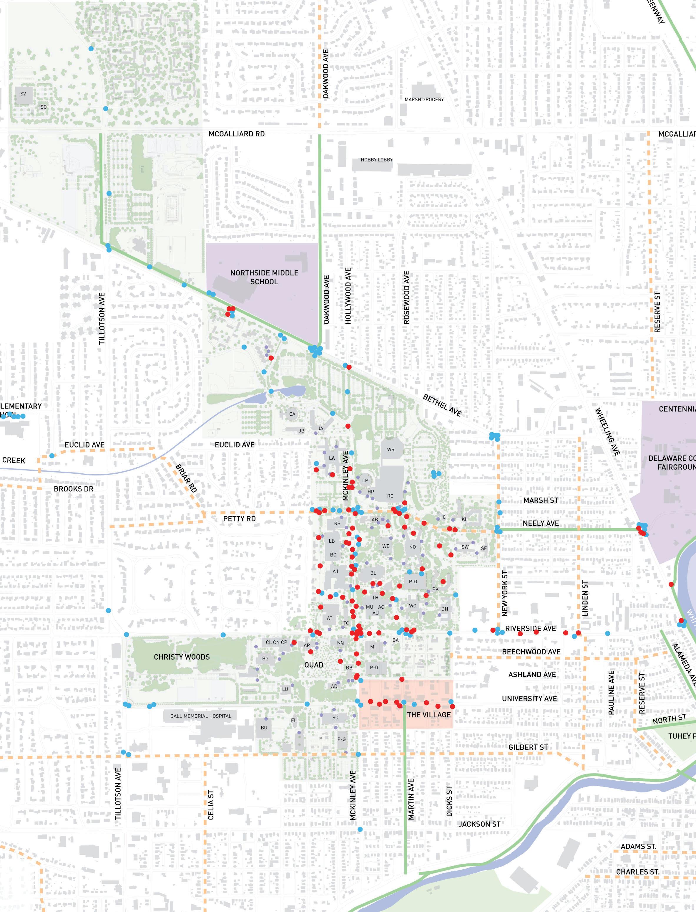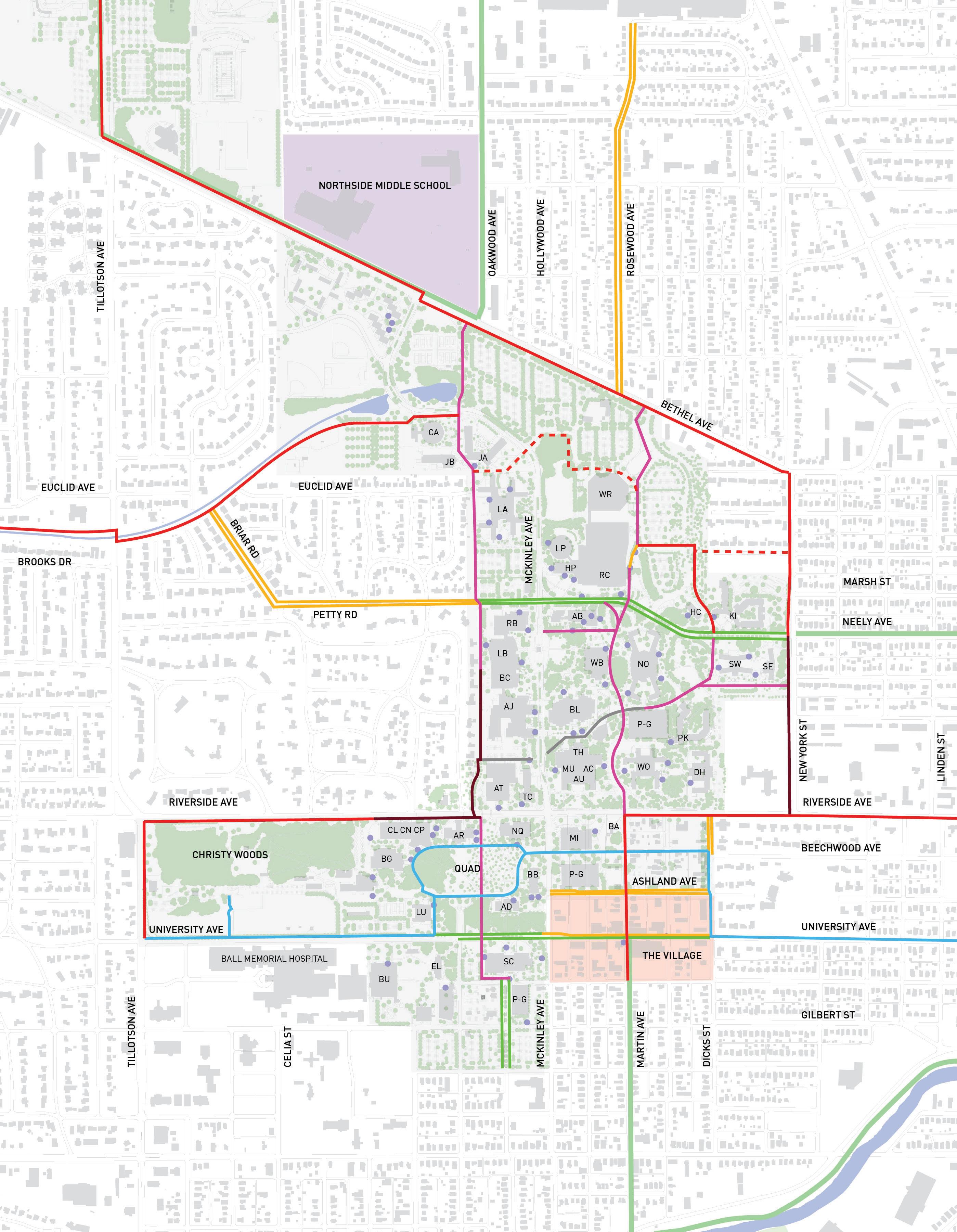 Work with the City of Muncie to fully implement the “Complete Street Policies”, especially where local streets intersect and have an impact on campus mobility. Connections to the White River Greenway, Minnetrista, and downtown Muncie should be considered.