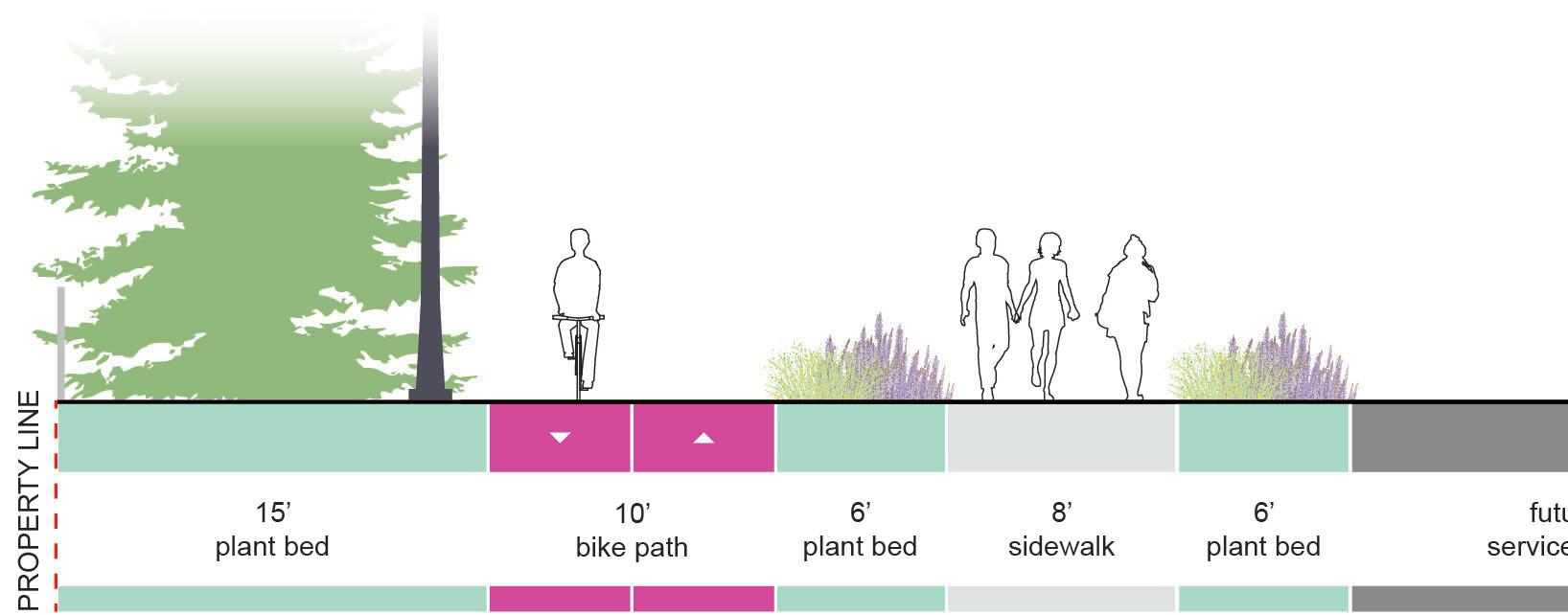 • Village Connectors: Minor on-street bicycle facilities connecting to the Village.