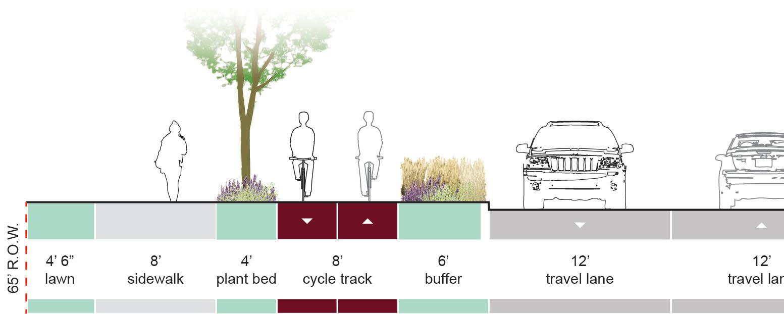 Existing conditions such as right-of-way, average daily traffic counts, and potential implementation costdeterminedthetypesofroutesproposed. The chartgraphiconthefollowingpagefurtherdefines thefacilitytypeby: