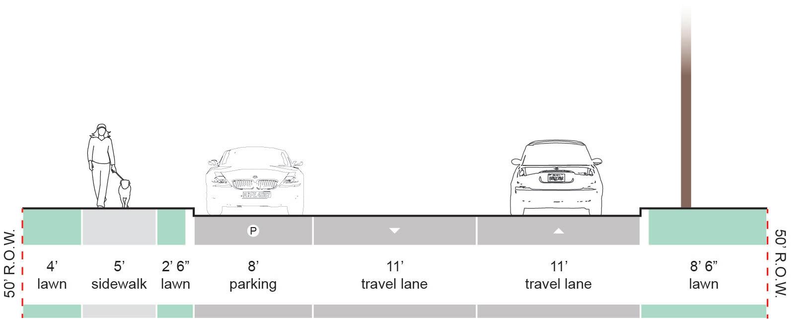 • Located outside of road right-of-way, usually on or throughout campus