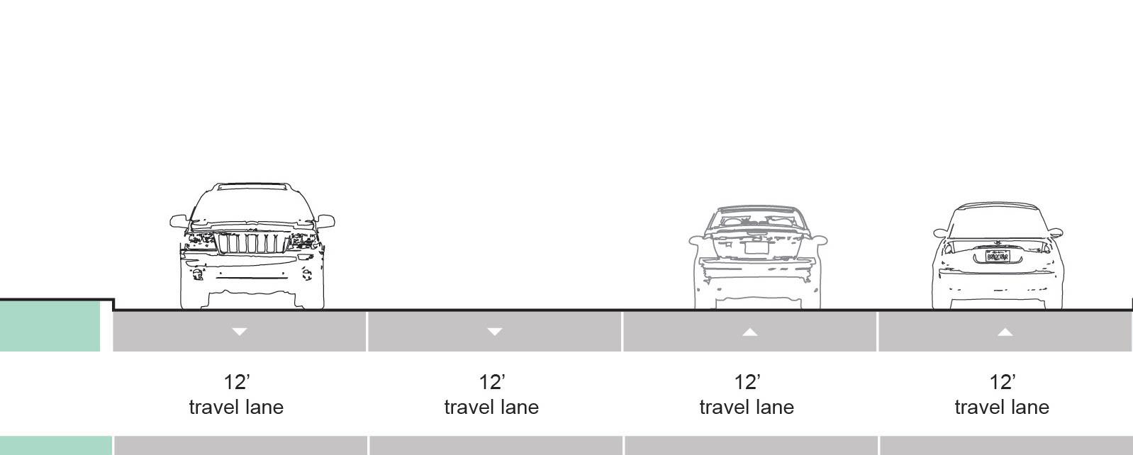• Least level of protection from vehicles. Cyclists are expected to travel beside traffic (bike lanes) or in the flow of traffic (sharrows)