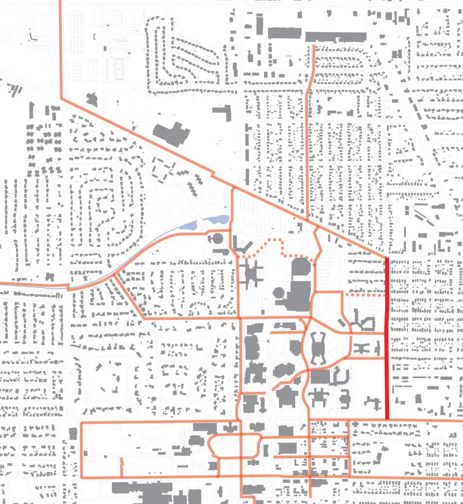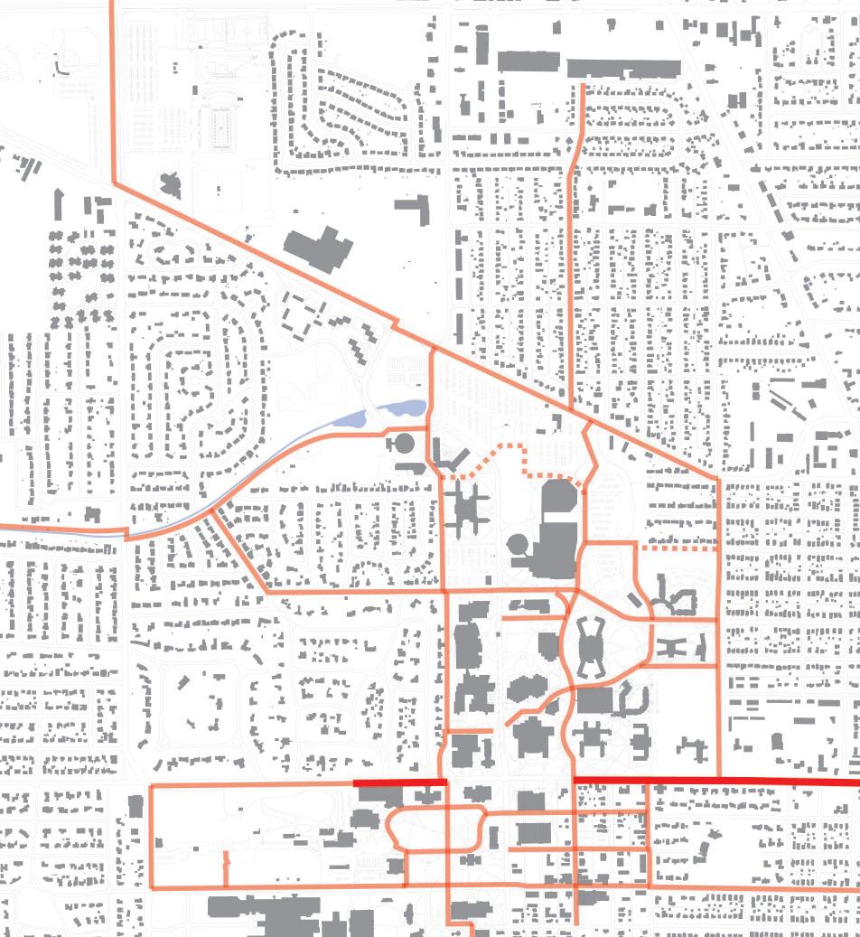 Connectivity to the Periphery: Provide bicycle routes that connect to destinations off campus.