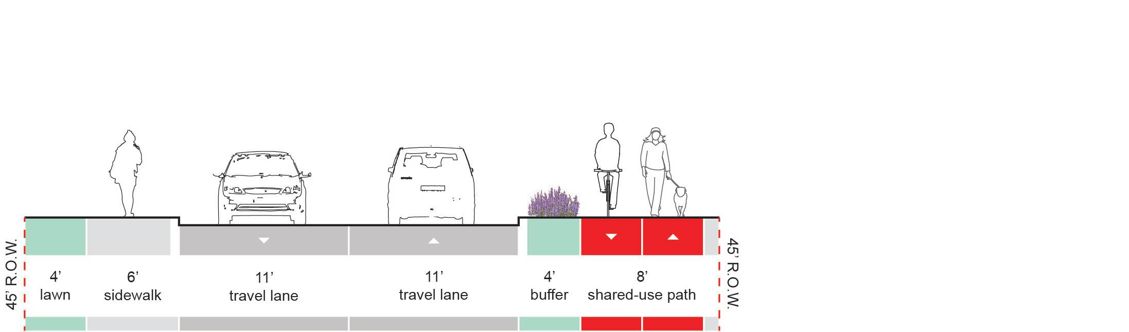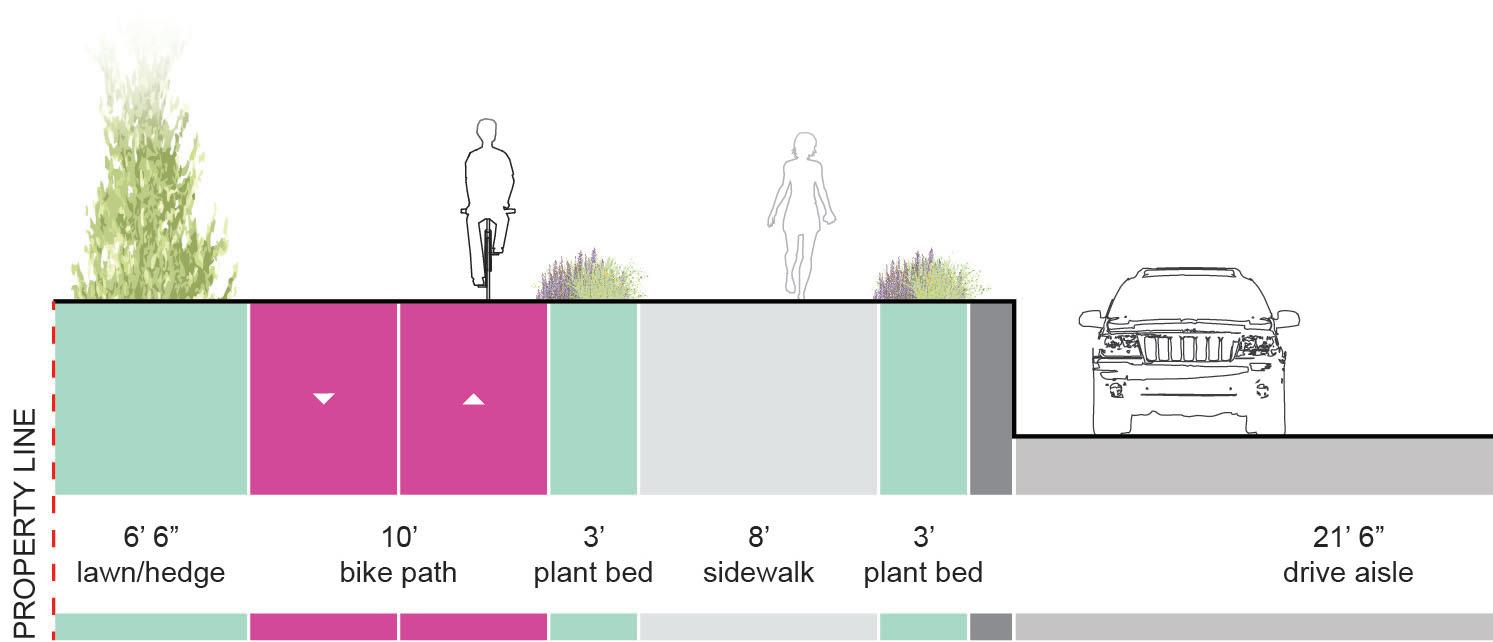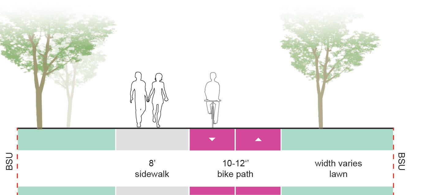 • Typically more expensive to install than Shared-Use Paths; Unit Pavers may be used in lieu of concrete or asphalt to create a higher end aesthetic, but installation costs will increase
