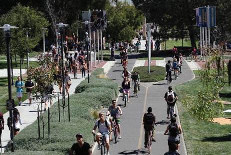 Sustainable and planned development for bicyclists on campuses could “optimize space, save the university money on parking and healthcare, and provide affordable transportation options for students and staff.”