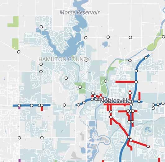 The 2015 Noblesville Alternative Transportation Plan was built around a hub-and-spoke network idea. This idea involves developing key destinations and the spokes needed to connect them. One of the main principles set with this hub-and-spoke idea was to build trails that are easiest in terms of land use and funding. This approach contributed to the current issue of gaps in the network’s connectivity.
