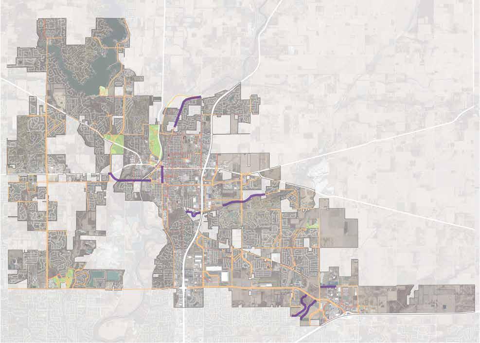 The network has some gaps in coverage, with areas of the city that are underserved and other areas that aren’t connected to interconnected facilities. The city recognizes that more facilities are needed to provide a more interconnected network and to encourage more bike and pedestrian use for both recreation and transportation. There is increasing demand for municipalities to offer multiple ways for people to get around the city, whether they are walking, biking, or driving. This is reflected in the consistent investment the city is making in its network of sidewalks, trails, and pathways.
