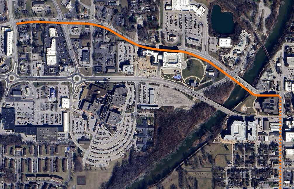 This study involved designing and planning the extension of Pleasant Street from 8th Street to Hague Road, including a bridge over White River. Roundabouts and intersection improvements were considered at key locations. The study focused on traffic counts and the geometrics needed to handle projected vehicle volumes along the corridor. The final design of the Pleasant Street Extension features a bridge over White River and three major roundabouts. Bicycle and pedestrian facilities were added next to the roadway, with connections to the Nickel Plate Trail and Midland Trace Trail.