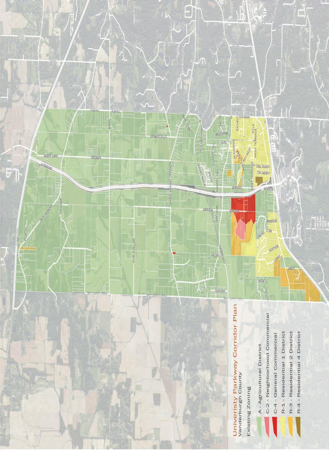 University Parkway serves an important role in western Vanderburgh County. This route connects State Route 62, (Lloyd Expressway) and the University of Southern Indiana north to State Route 66, (Diamond Avenue). The area around the parkway being studied is bordered by State Road 66 to the north; State Road 62 to the south; Peerless Road and Church Road to the east; and the Vanderburgh/Posey County line to the west.