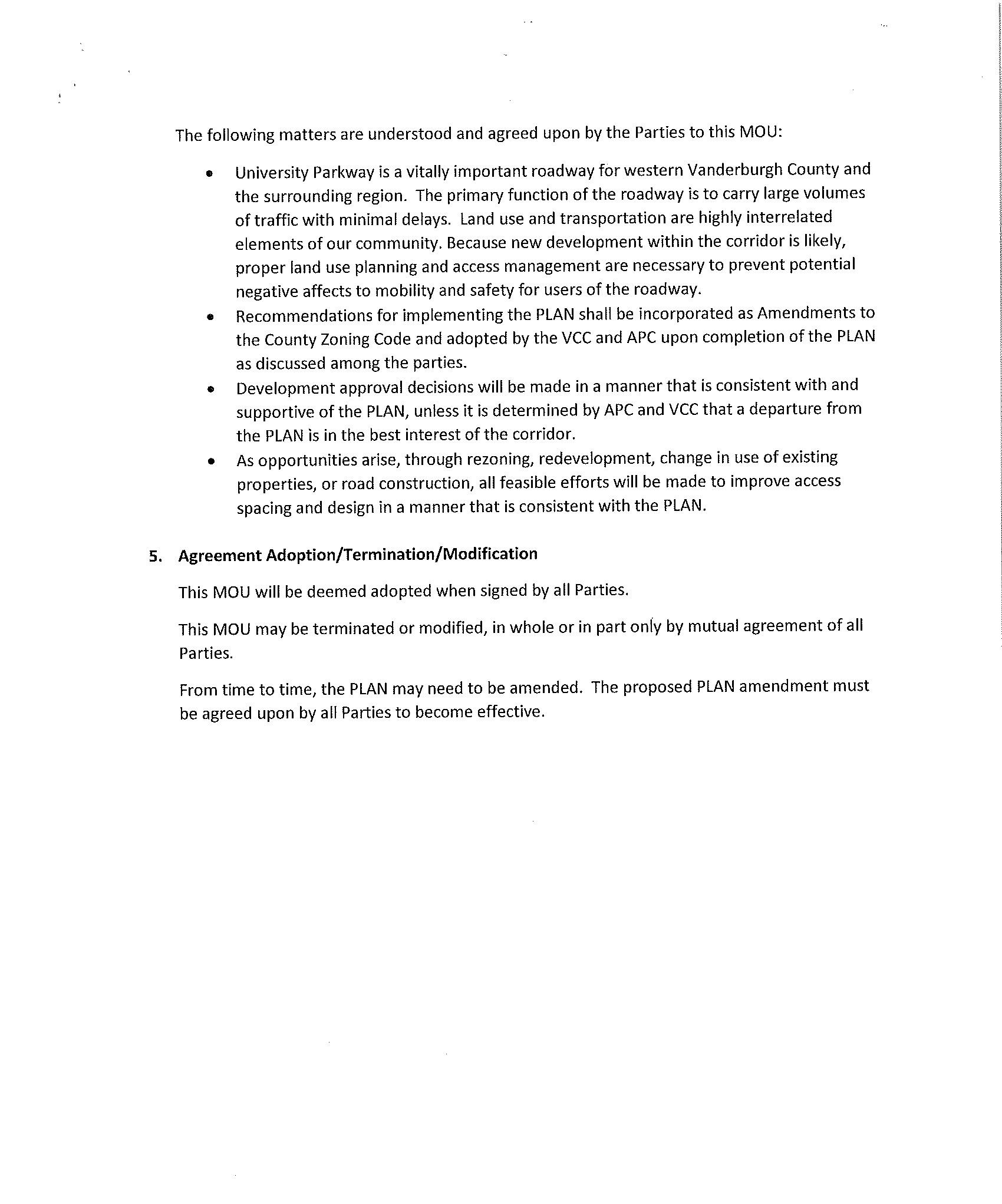 Vanderburgh County will adopt the corridor plan by resolution as part of the policy of its comprehensive plan to ensure that it promotes the public health, safety, morals, convenience, order, general welfare, and economic efficiency. Even with a well-designed planning process, a community may lack consensus on certain issues or, in the worst case, may not have enough support to adopt a plan. In that case, the County may want to: