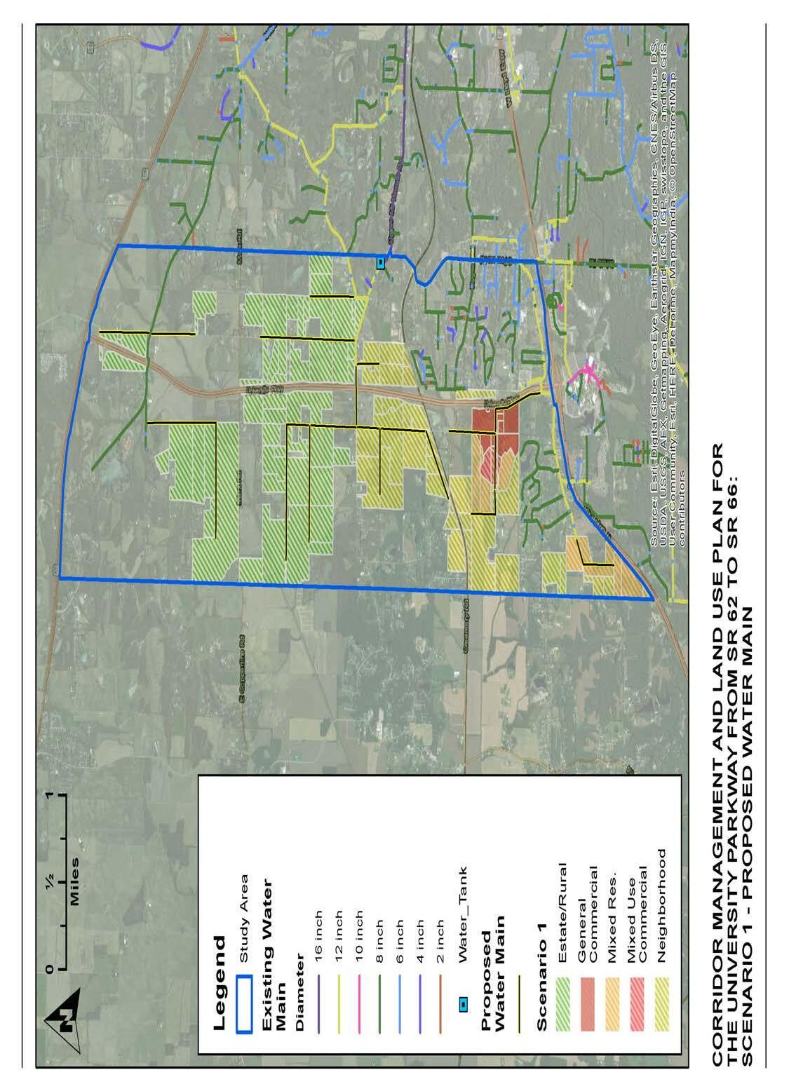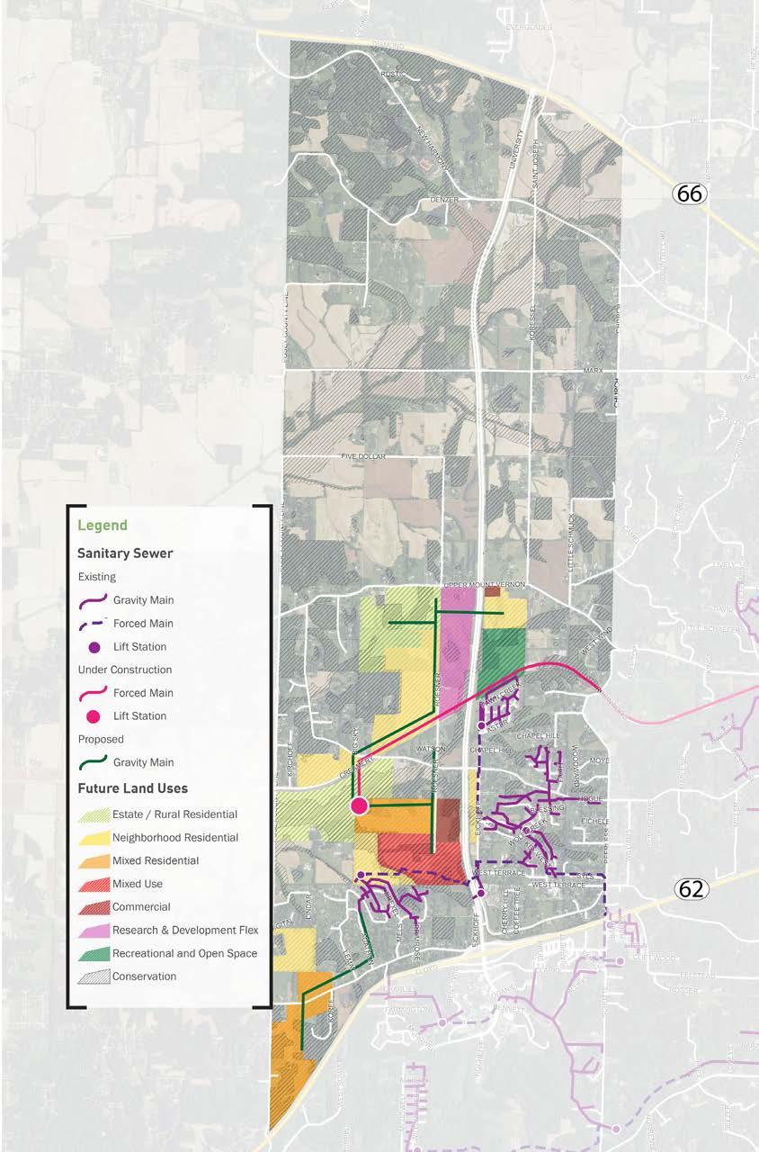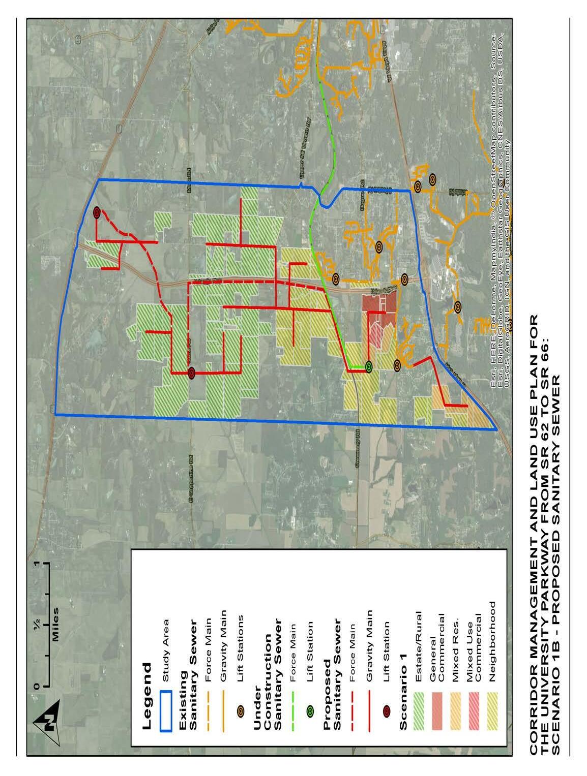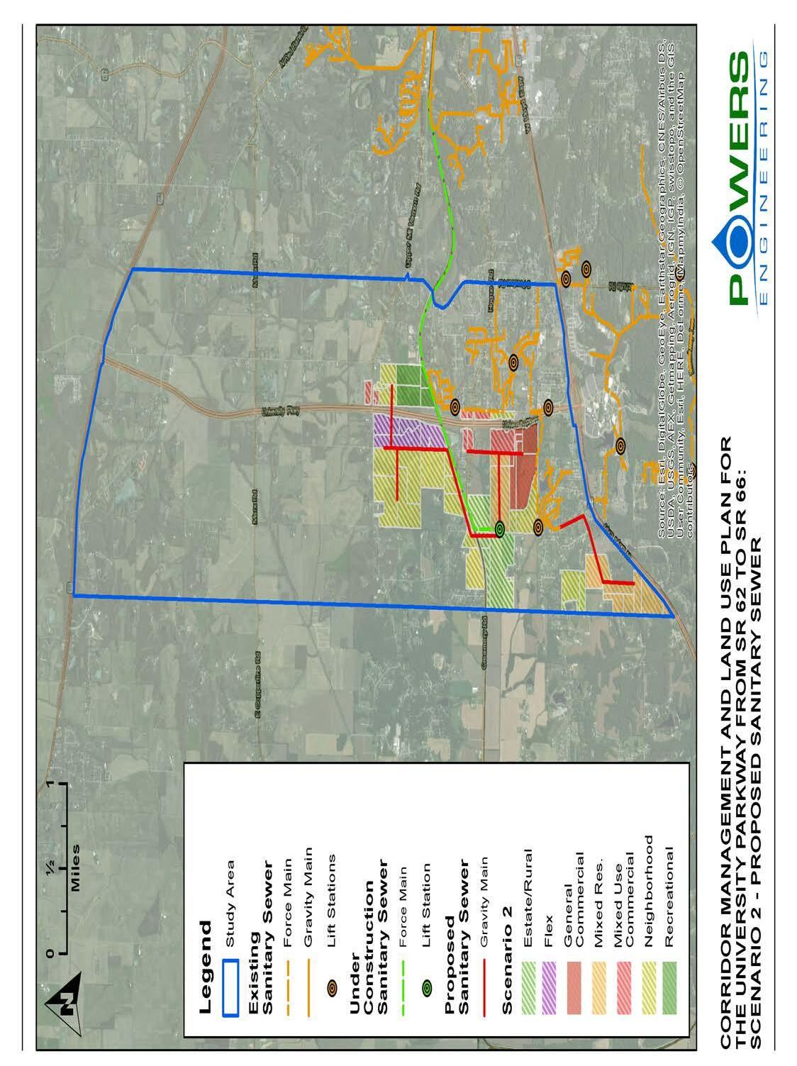 A majority of the Corridor is not currently served by public utilities with the exception of the southern most part of the study area including the southwest corner. The goal of the public utilities was to continue to expand the access to utilities north along University Parkway. To achieve this goal a number of improvements are required to better serve the area. Some of these include sewer system rehabilitation, lift station improvements, water main extensions at Eickhoff Road and Middle Mt. Vernon, Creamery Road lift station, trunk line capacity upgrade, etc.