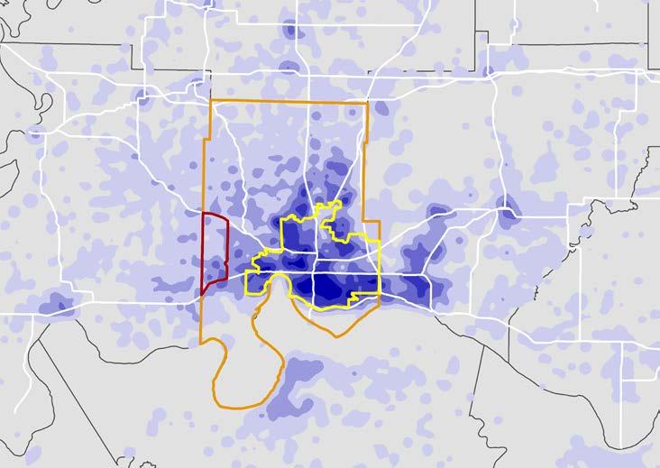 The 20-minute zone, outlined in green on figure 30, offers a surplus of retail in all industry subsectors, seen in Figure 32 on the previous page. The only exceptions are Gasoline Stations and Nonstore Retailers. This means that the daily and regional needs are well met within a short drive for current and future residents of the University Parkway Corridor. The Nonstore Retails are infomercials, online sales, catalog sales, etc. which means it is highly unlikely any community will have a surplus in this category.