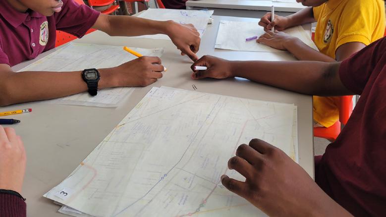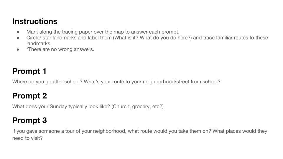 to the neighborhood level, and the personal paths and stories shared by the students, reflecting their interactions with transportation, community, and everyday
